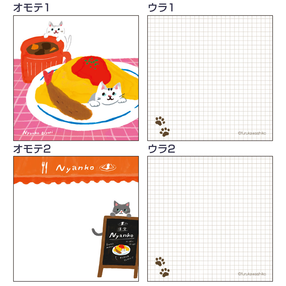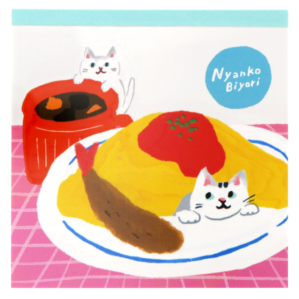 オムライスの中に入ったネコがチャーミングなスクエアメモ。