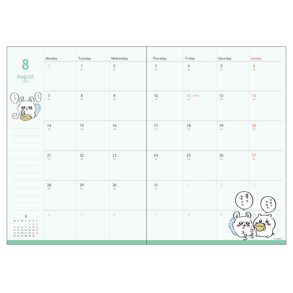 2023年手帳 月間A6 ちいかわ「なかよし」本文