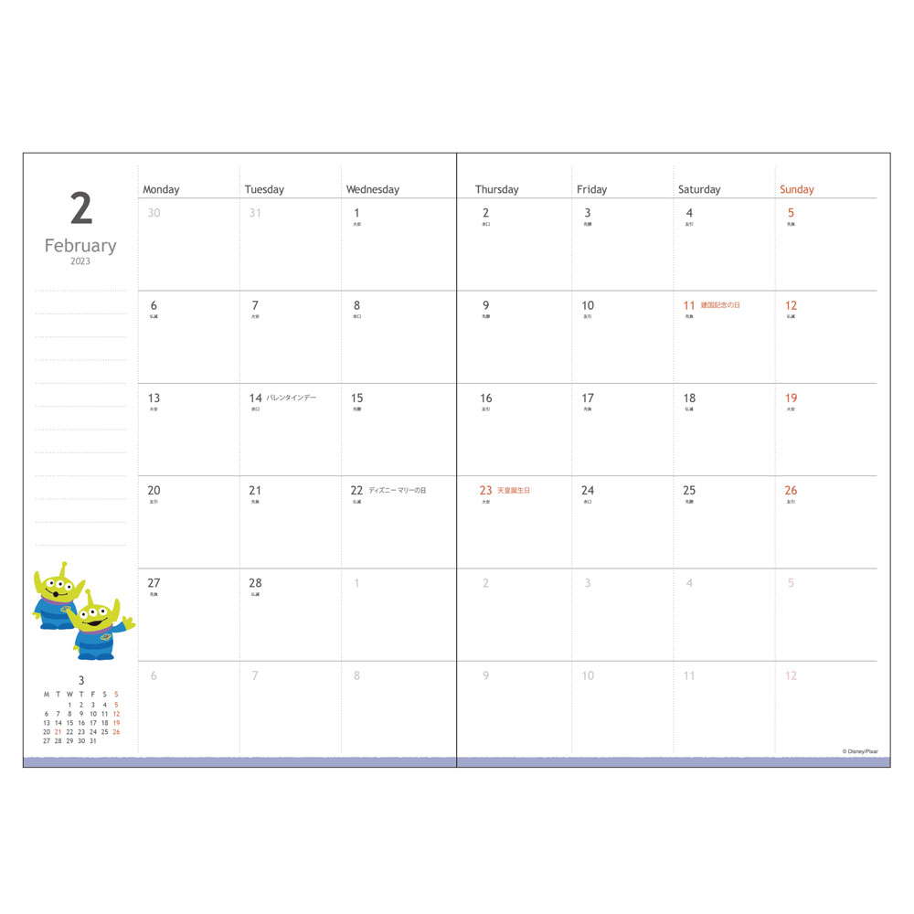 2023年手帳 月間B6 トイ・ストーリー「エイリアン」
