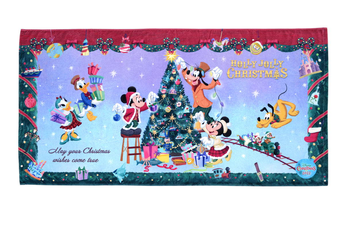 タオルには、クリスマスのオーナメントになったパークのモチーフがあしらわれています。