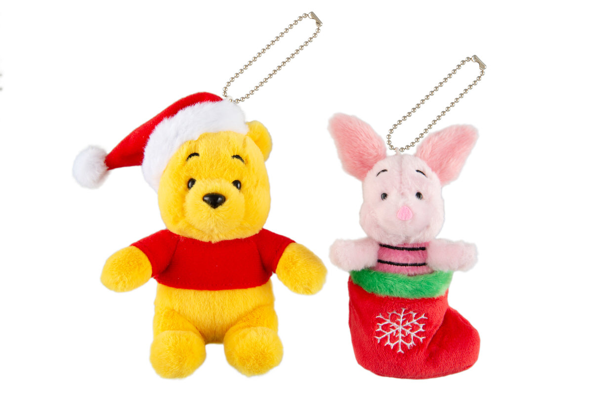 「プーさん」はサンタ帽を被り「ピグレット」は靴下に入った、クリスマスらしいぬいぐるみバッジです☆