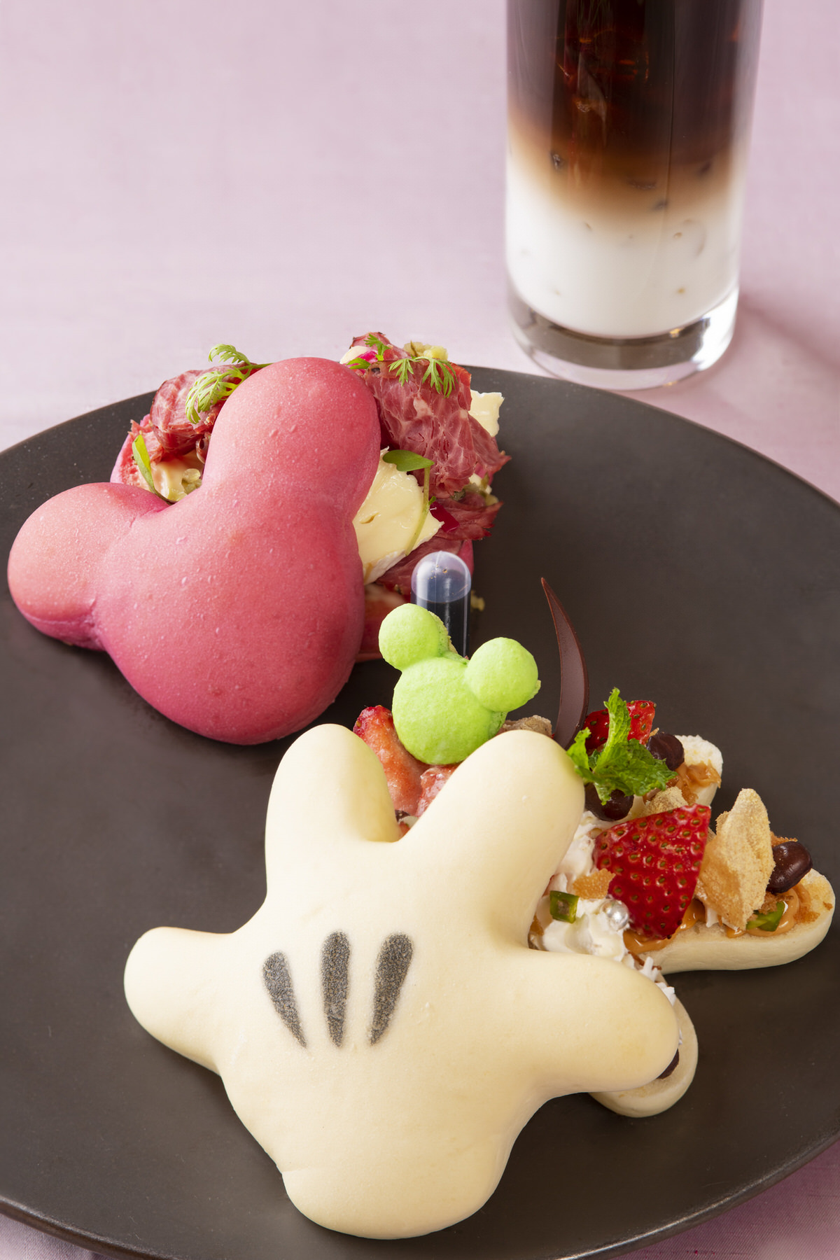 わらび餅ときな粉クリームのサンドウィッチには、ミッキーシェイプのマカロンをトッピング!