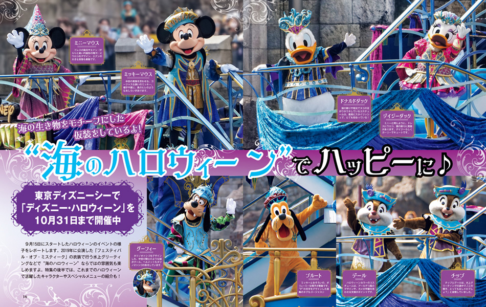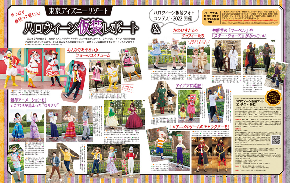 ”ディズニー・ハロウィーン”ならではの、ゲストの仮装もレポートされた大ボリュームの特集です。
