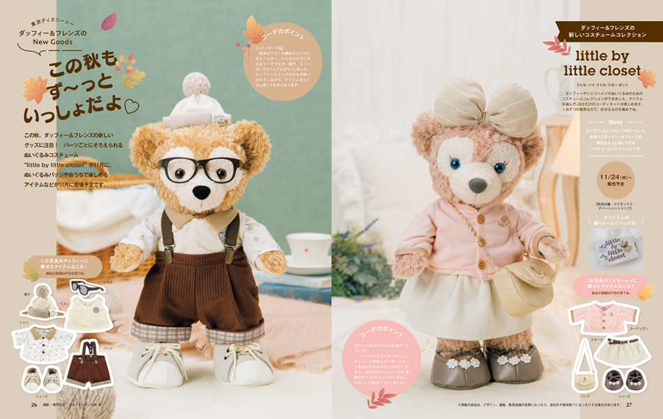 2022年11月24日から発売される、ダッフィー&フレンズの新グッズ「リトル・バイ・リトル・クローゼット」も特集。