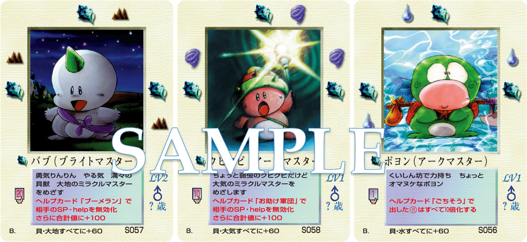 ファミリーコンピューターのゲーム『貝獣物語』、スーパーファミリーコンピューターのゲーム『大貝獣物語』、『大貝獣物語II』に登場する貝の勇者「バブ」、「クピクピ」、「ポヨン」も収録されています。