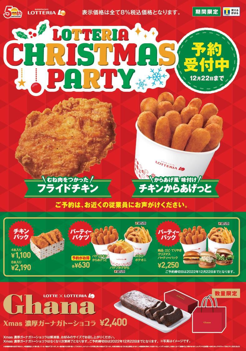 ロッテリアの「LOTTERIA CHRISTMAS PARTY」として、2022年もオリジナルメニューが登場します!