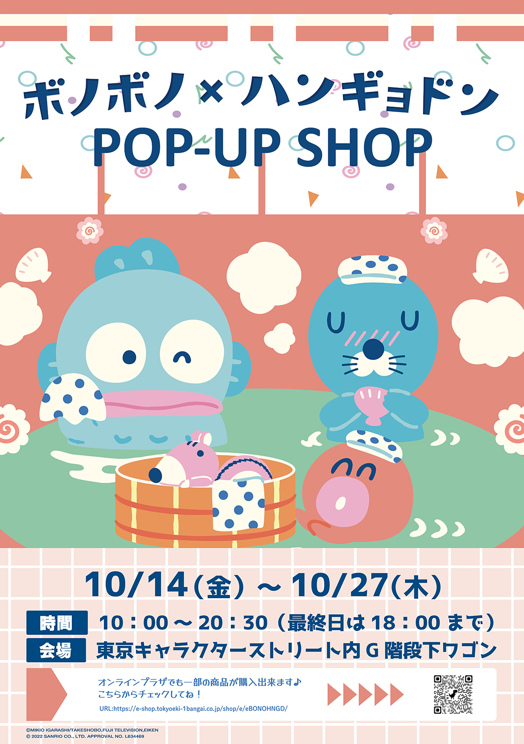 東京キャラクターストリートにて、2022年10月14日から10月27日の期間限定で開催される『ぼのぼの×ハンギョドン』POP-UP SHOPの紹介でした!