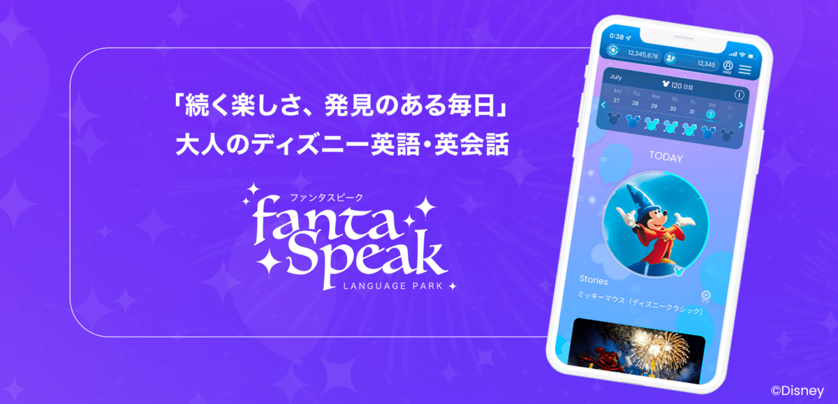 「ディズニー fantaSpeak(ファンタスピーク)」は、世界初となるディズニー&ピクサーの作品による大人向けの英語学習カリキュラム。