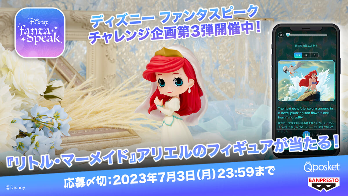 また、「Stories」コーナーに『リトル・マーメイド』が追加されたことを記念し、バンプレストの”Q posket Disney Characters -Ariel Royal Style-”が当たるチャレンジ企画第3弾も開催されます☆