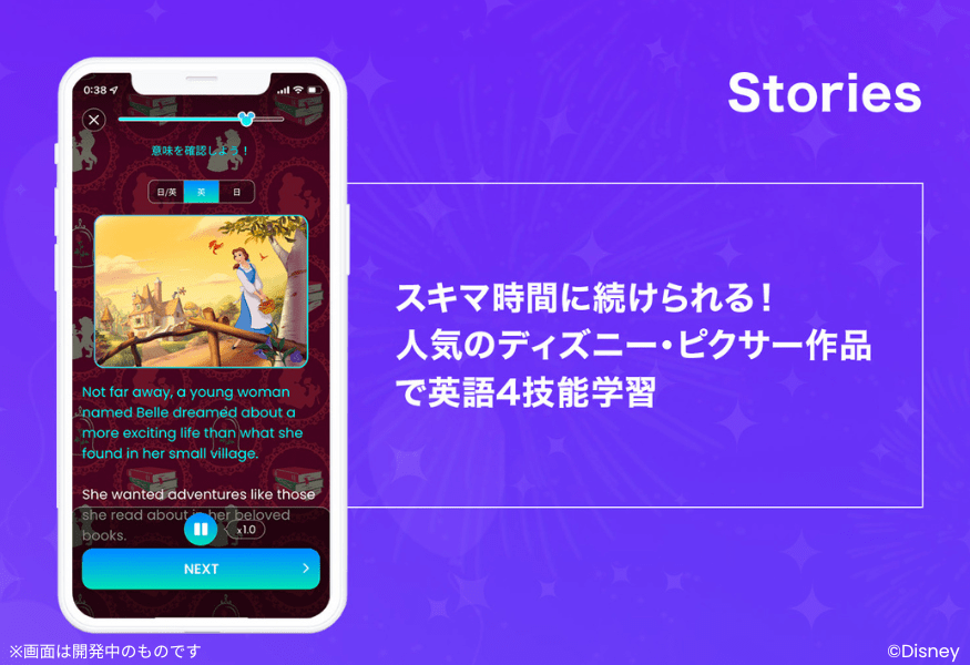 また本サービスは、ディズニーおよびピクサー作品による大人向けの英語学習アプリとして、世界で初めてとなります。