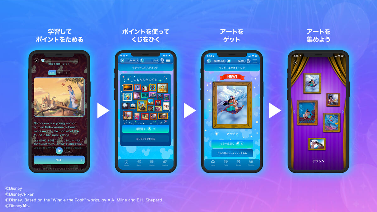 「ディズニー ファンタスピーク」では、今回追加された「コレクション」機能のほかにも、学習ポイントを活用した学びがより楽しくなる機能が今後も展開されます。