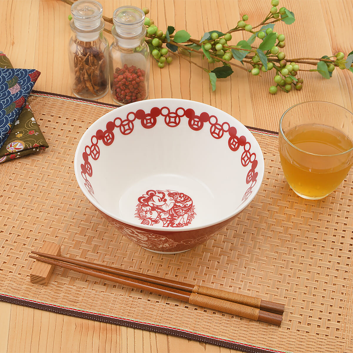 ラーメンどんぶりの縁にはミッキーモチーフを色違いで交互にレイアウト。