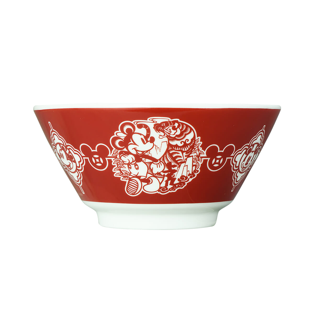 「ミッキーマウス」と虎の迫力あるデザインが特徴のラーメンどんぶり。