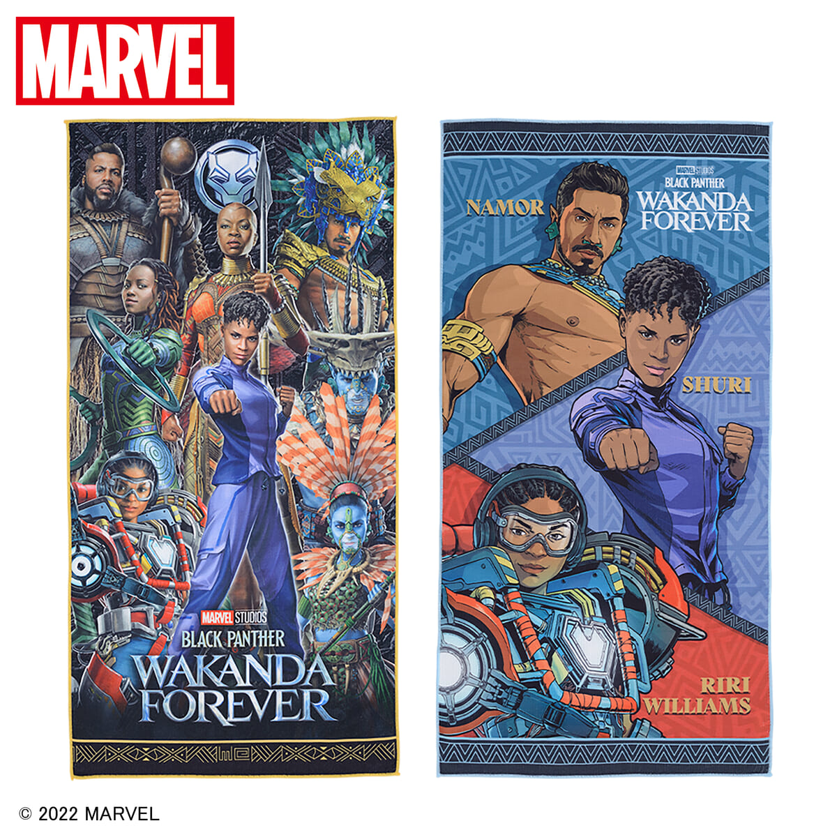 新作映画『ブラックパンサー/ワカンダ・フォーエバー』の力強くクールなデザインのバスタオル!