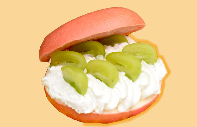 シャインマスカットをたっぷりのクリームとパンで挟んだサンドイッチ。