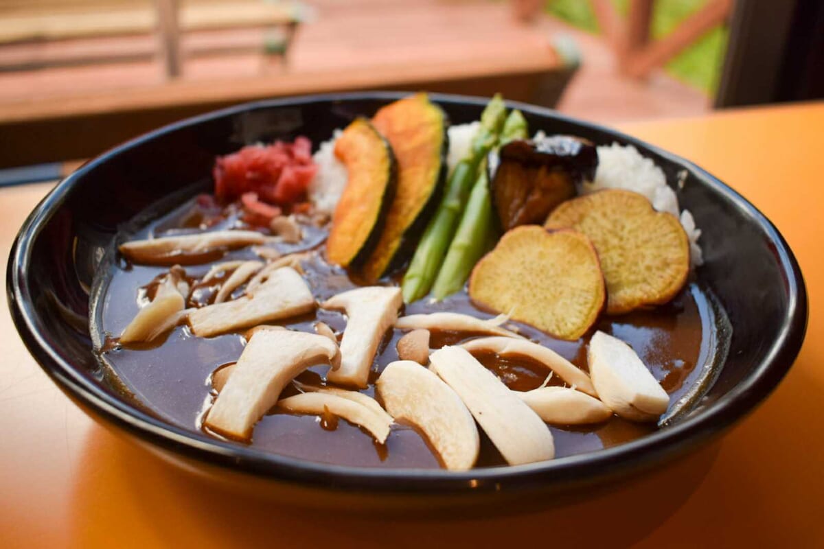 秋が旬のかぼちゃやさつまいも、きのこなどの野菜をたっぷり使用したカレー。