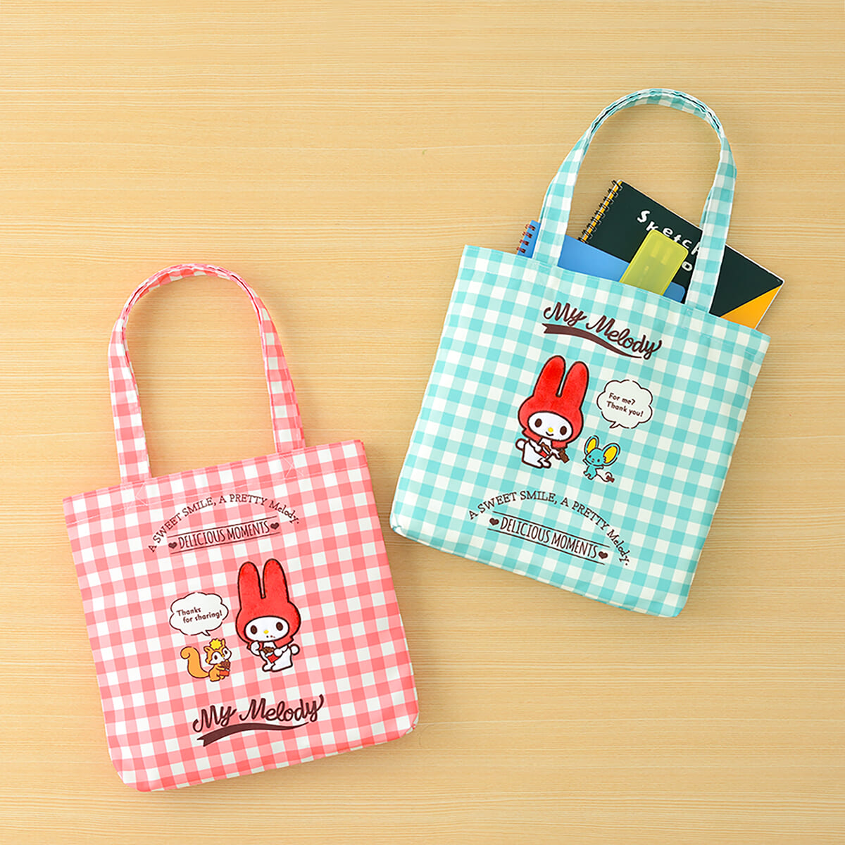 マイメロディ プレミアムチェックスタイルアップリケトートバッグ