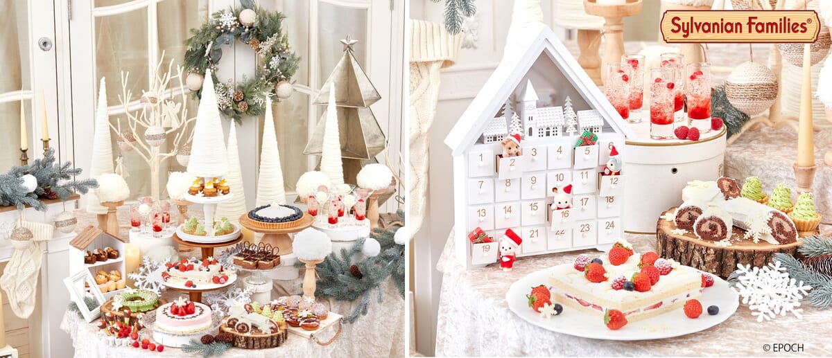 クリスマスパーティに迷い込んだシルバニアファミリーをテーマにしたスイーツブッフェ。