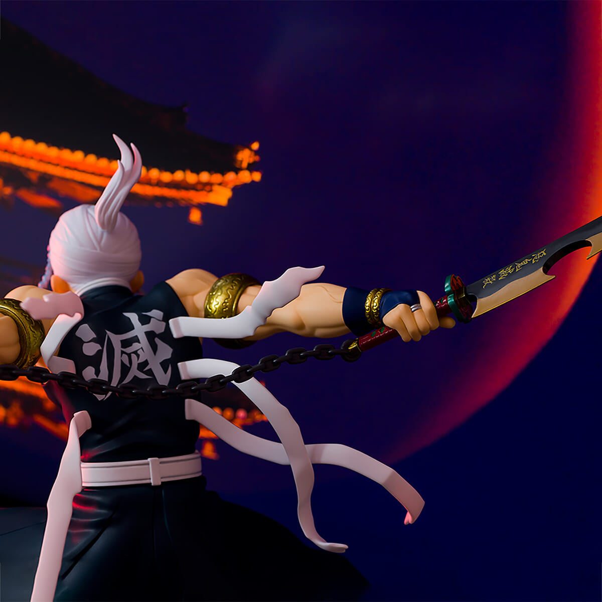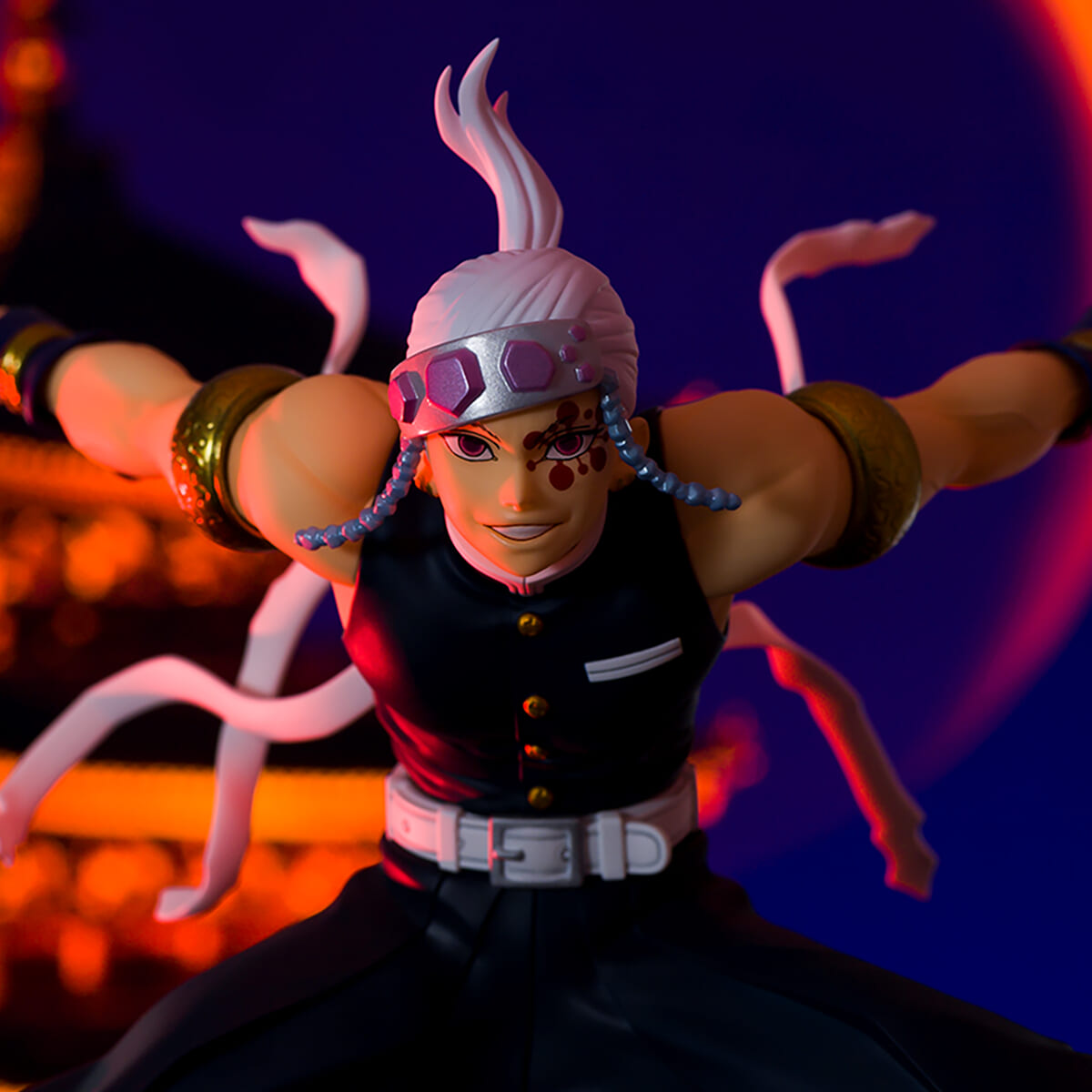 日輪刀の鍔、そしてド派手なアクセサリーなども緻密に表現された「宇髄天元」の大迫力な姿を楽しめます☆