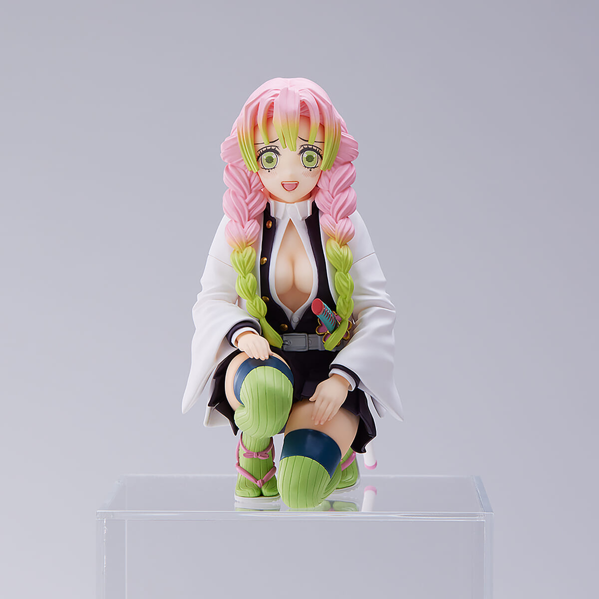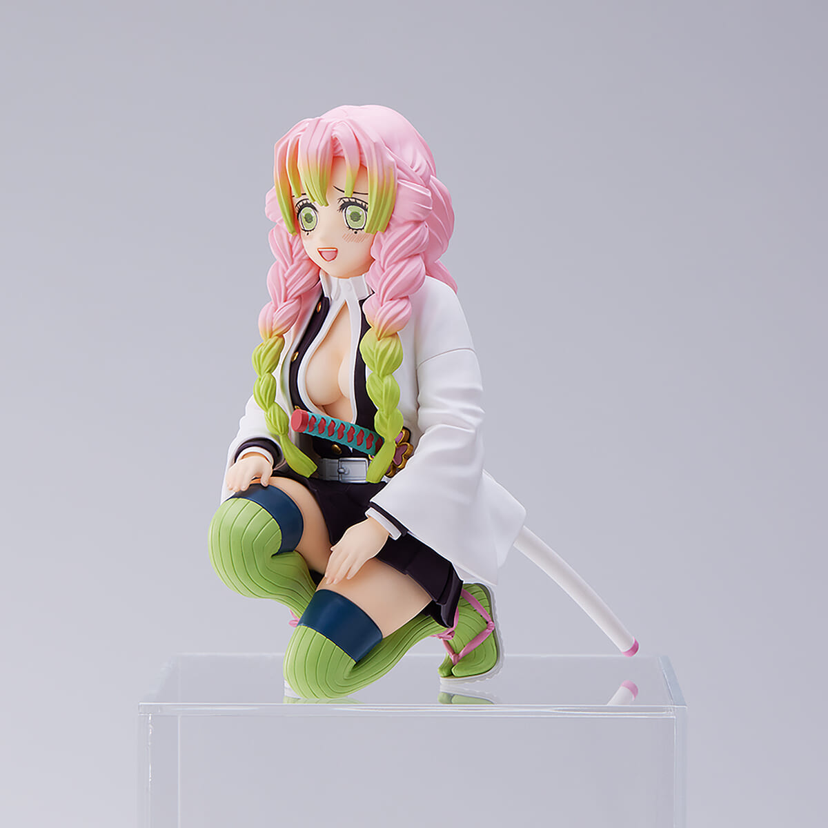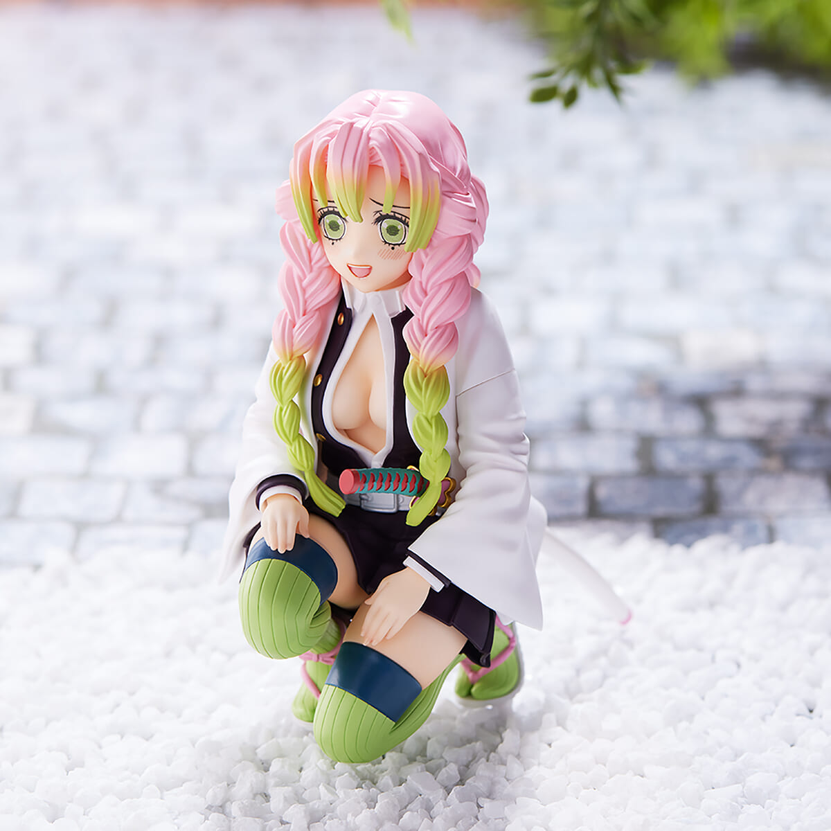 片膝を床に付けたポーズの「甘露寺蜜璃」の姿がフィギュアとして展開されます。