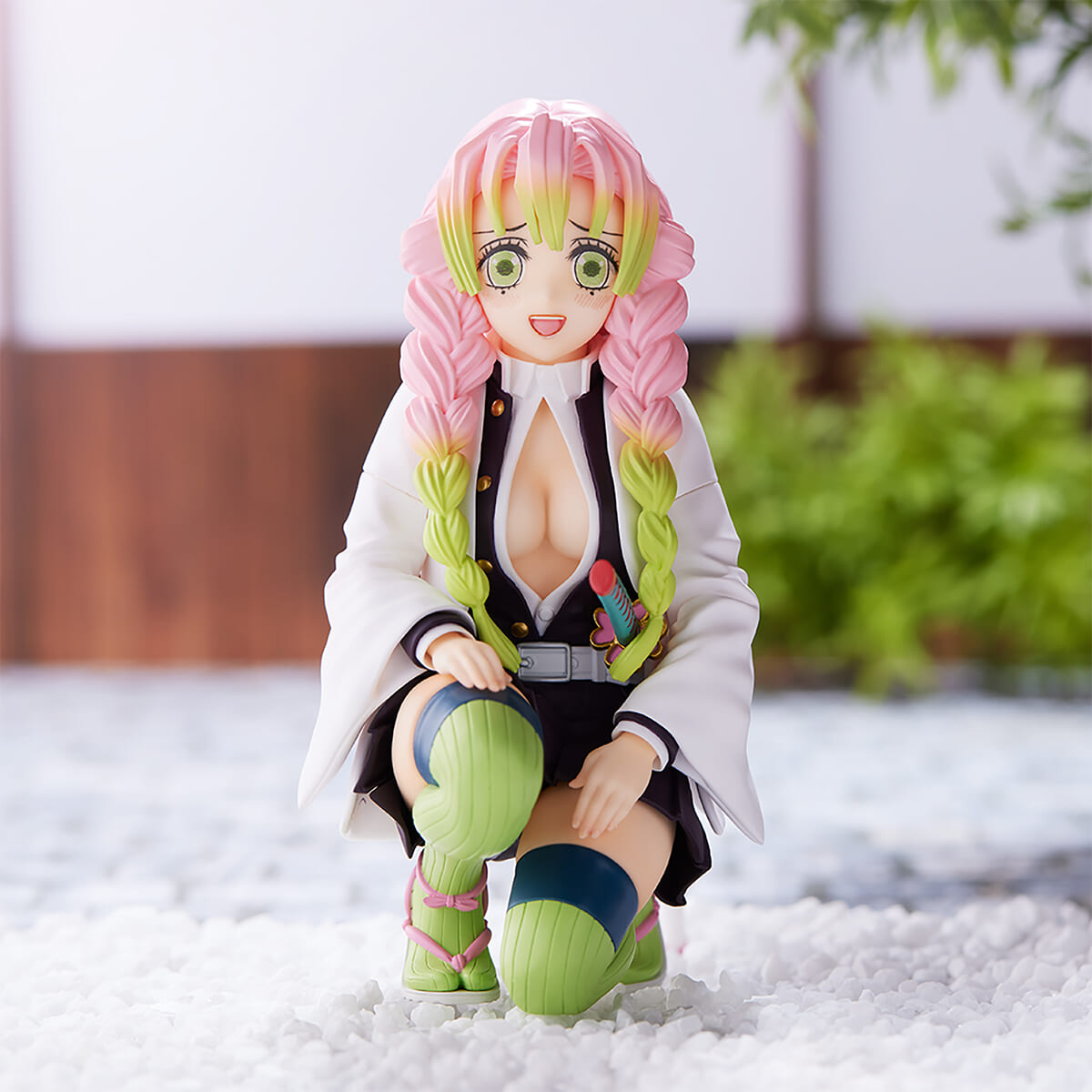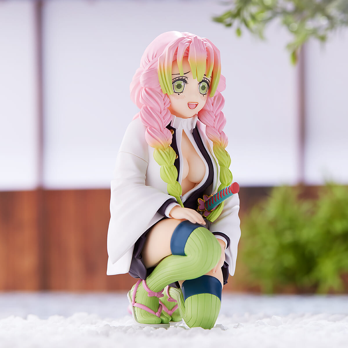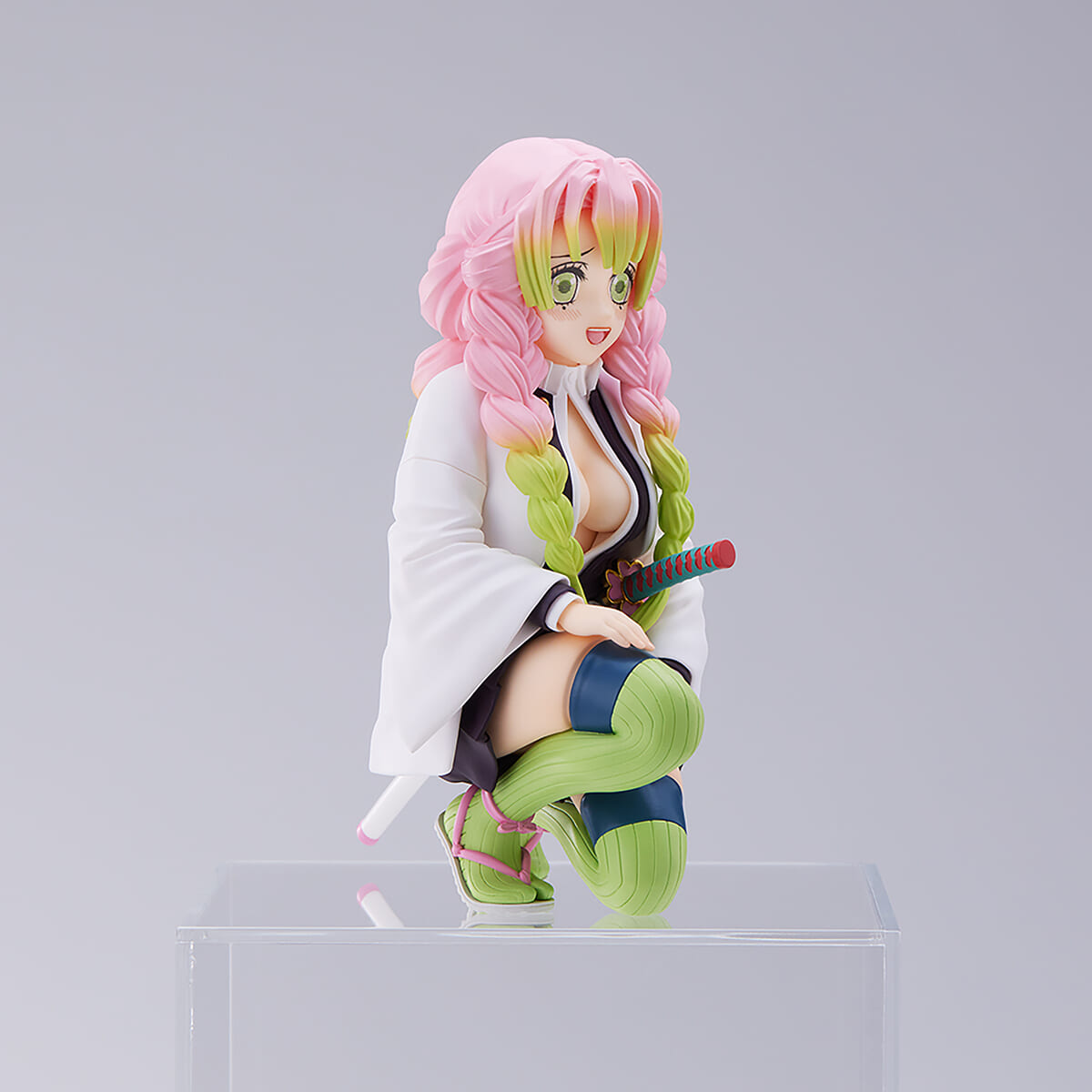 片膝を床に付けたポーズの「甘露寺蜜璃」の姿がフィギュアとして展開されます。