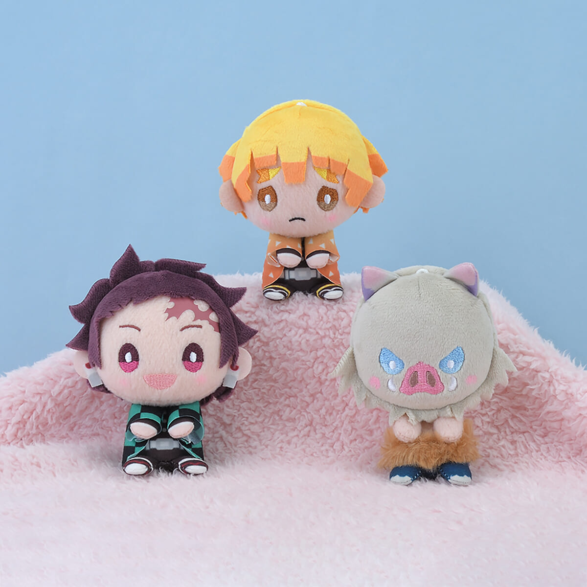デフォルメとピンクのほっぺがキュートな「竈門炭治郎」「我妻善逸」「嘴平伊之助」です。