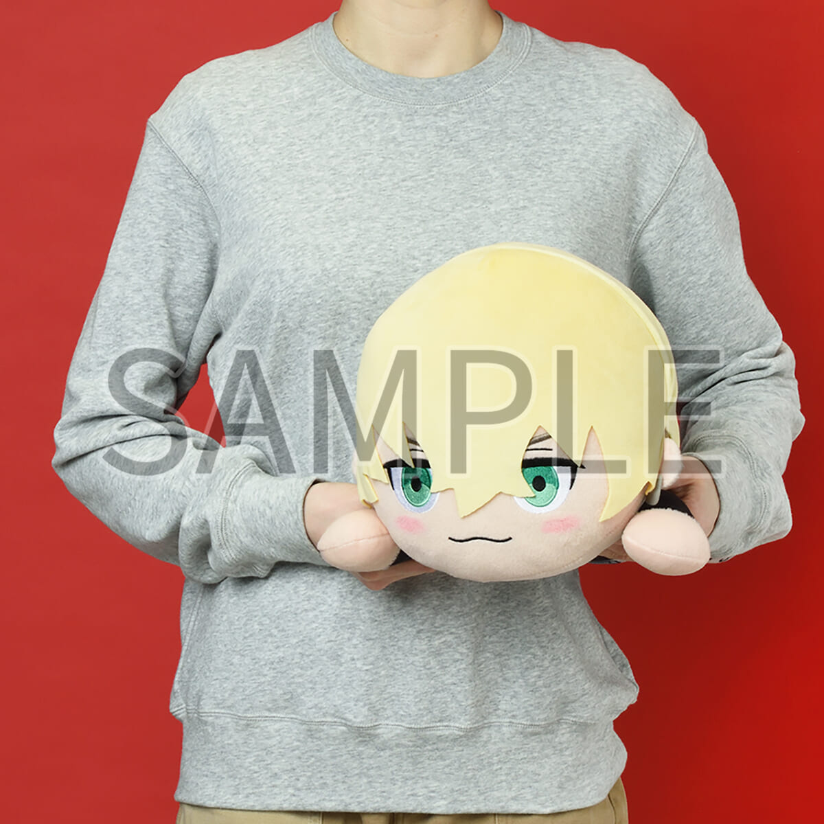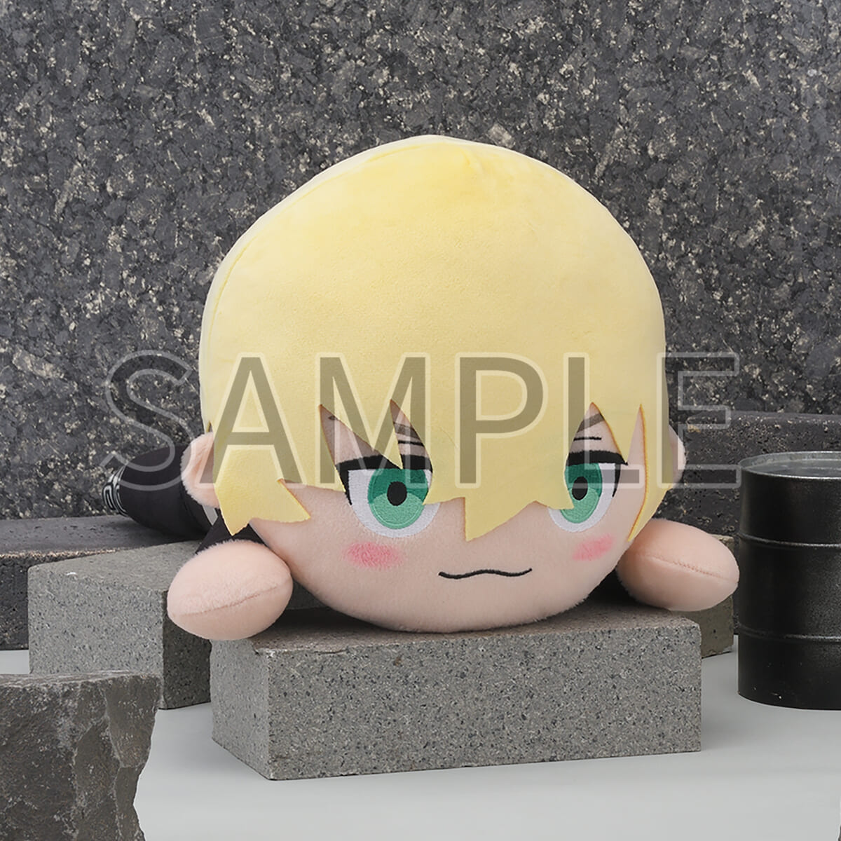 金髪と黒髪のツーブロックが特徴のヘアスタイルが、そのままぬいぐるみとして再現されています。