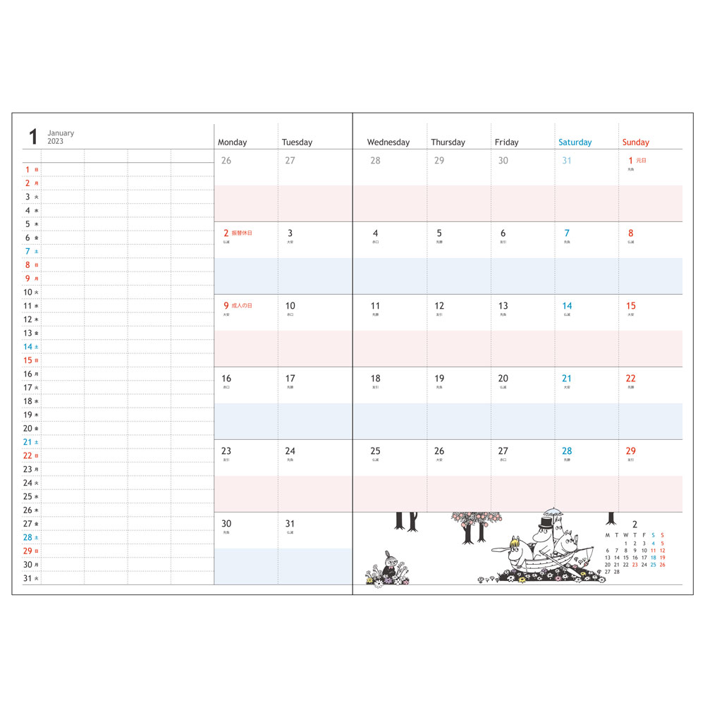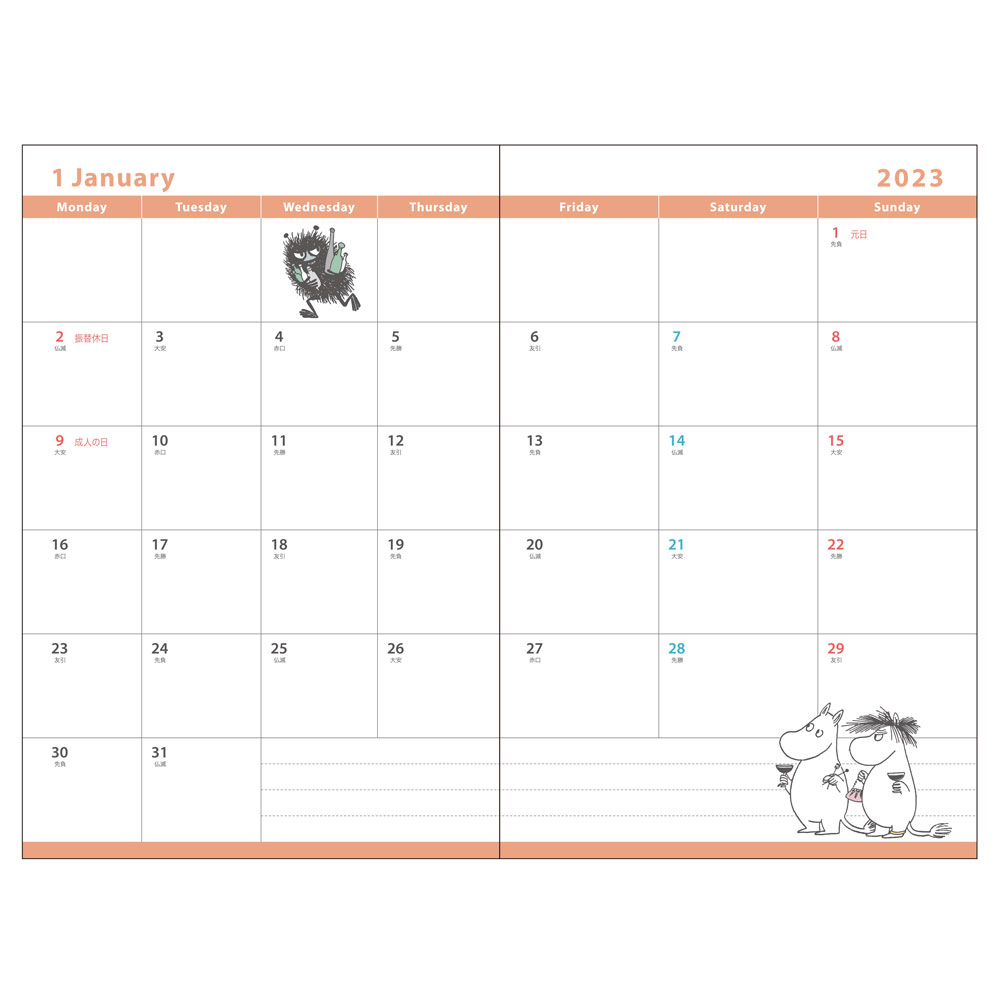 そんな「サンスター文具」から「ムーミン」デザインの「2023年月間手帳」が登場!