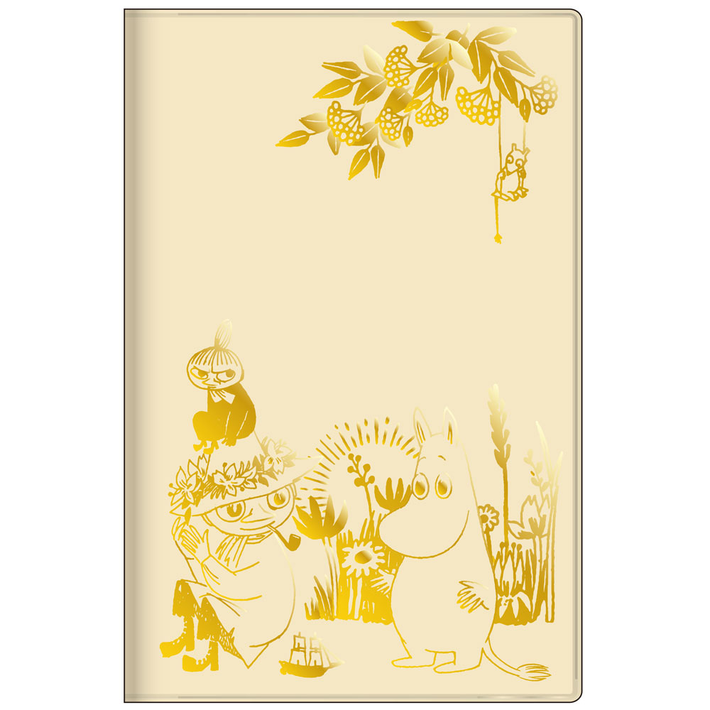 「ムーミン」「スナフキン」「リトルミイ」の日常を金泊で再現した、上品な印象のダイアリーです。