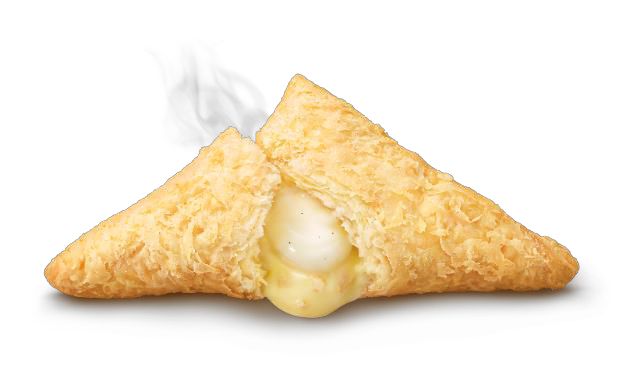 パイ生地を何層にも重ねることで生まれるサクサクした食感の三角パイに、とろ~りあたたかいクリームのハーモニーが魅力です。