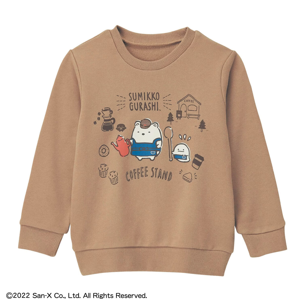 くすみカラーがおしゃれな「すみっコぐらし」デザインの裏毛スウェットシャツ。