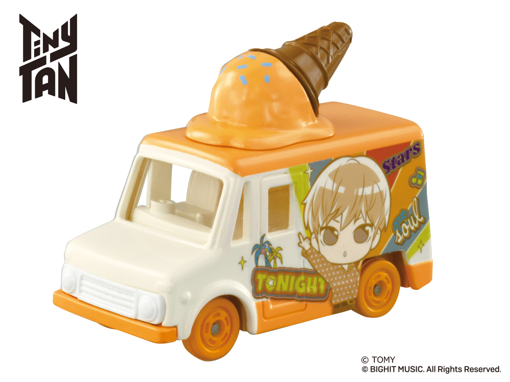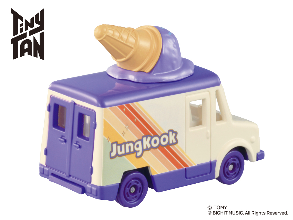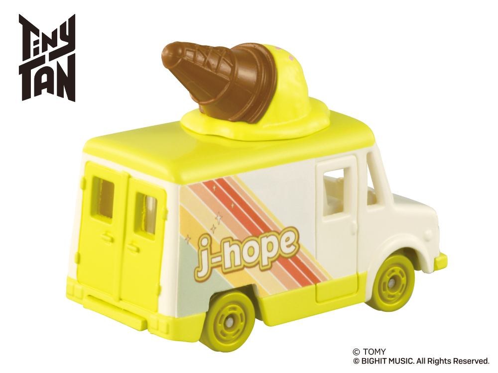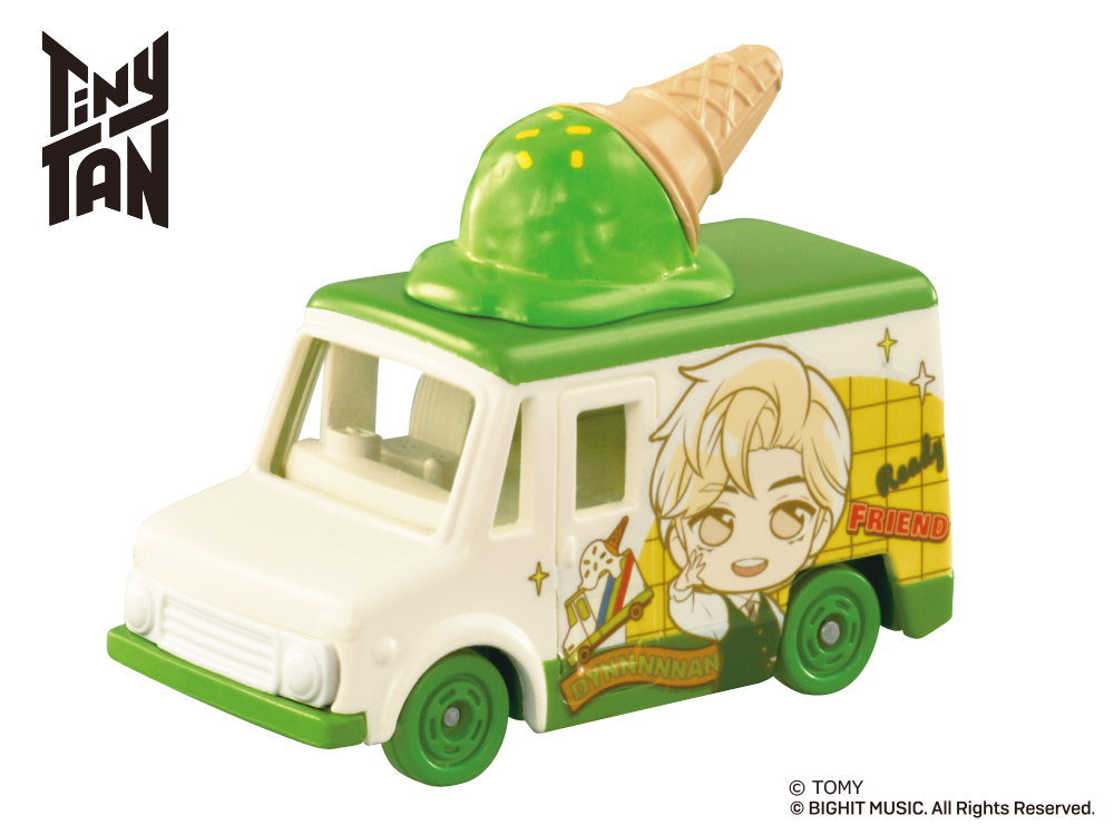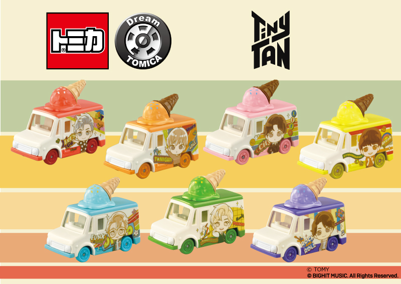「Tiny TAN コレクション」は、人気アイドルグループ「BTS」の『Dynamite』MVに登場する車をイメージした車両に、各キャラクターのイメージカラー色のアイスが乗せられたトミカです。