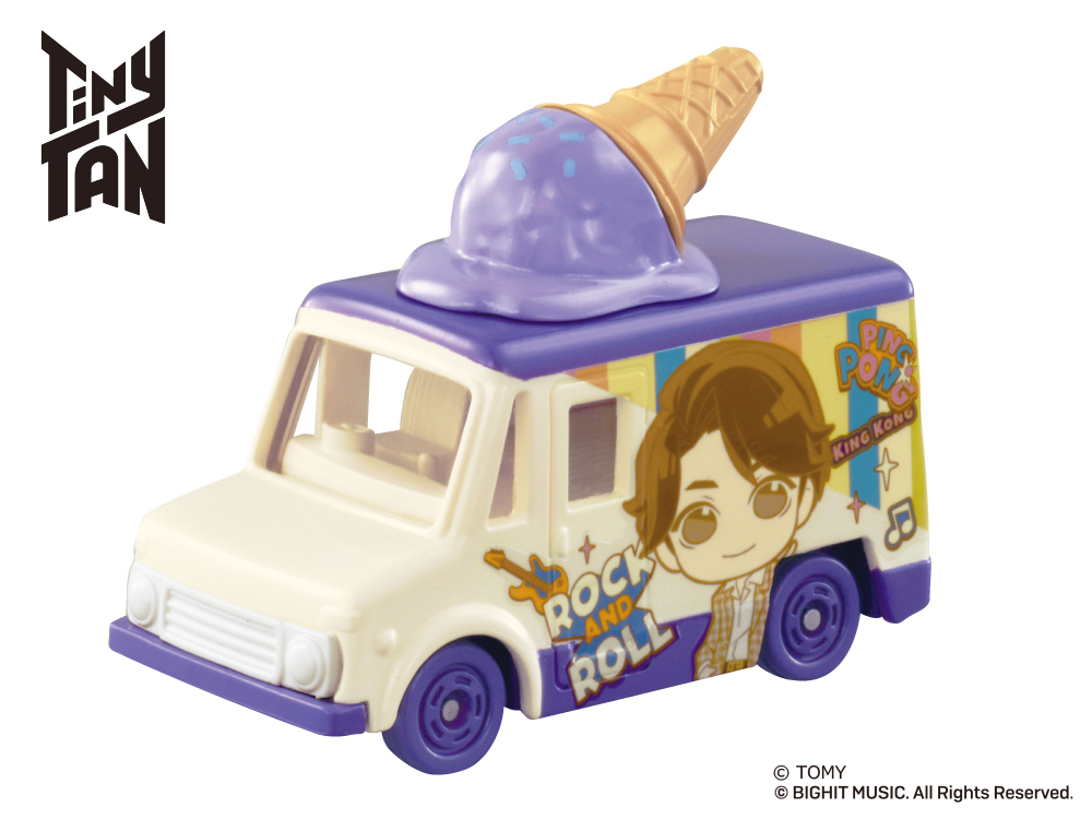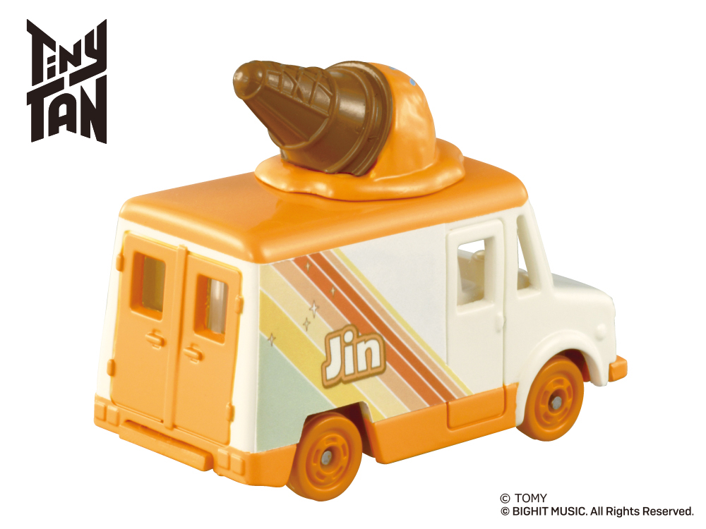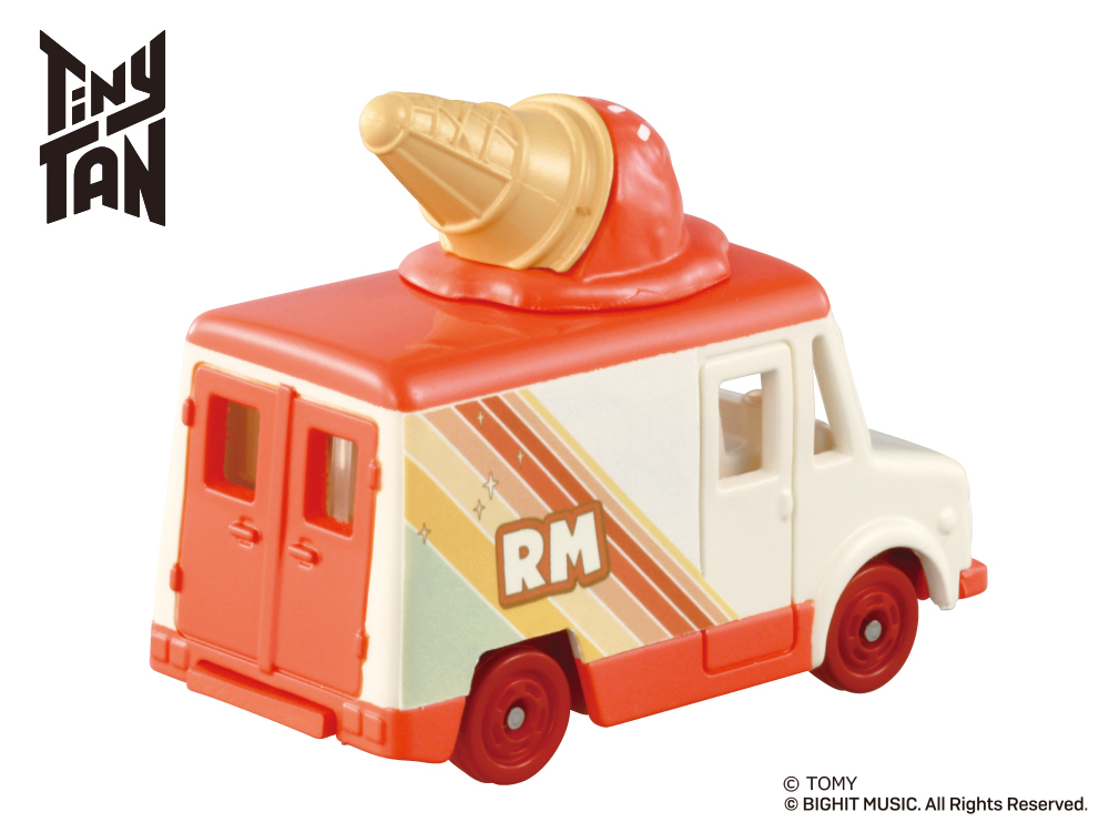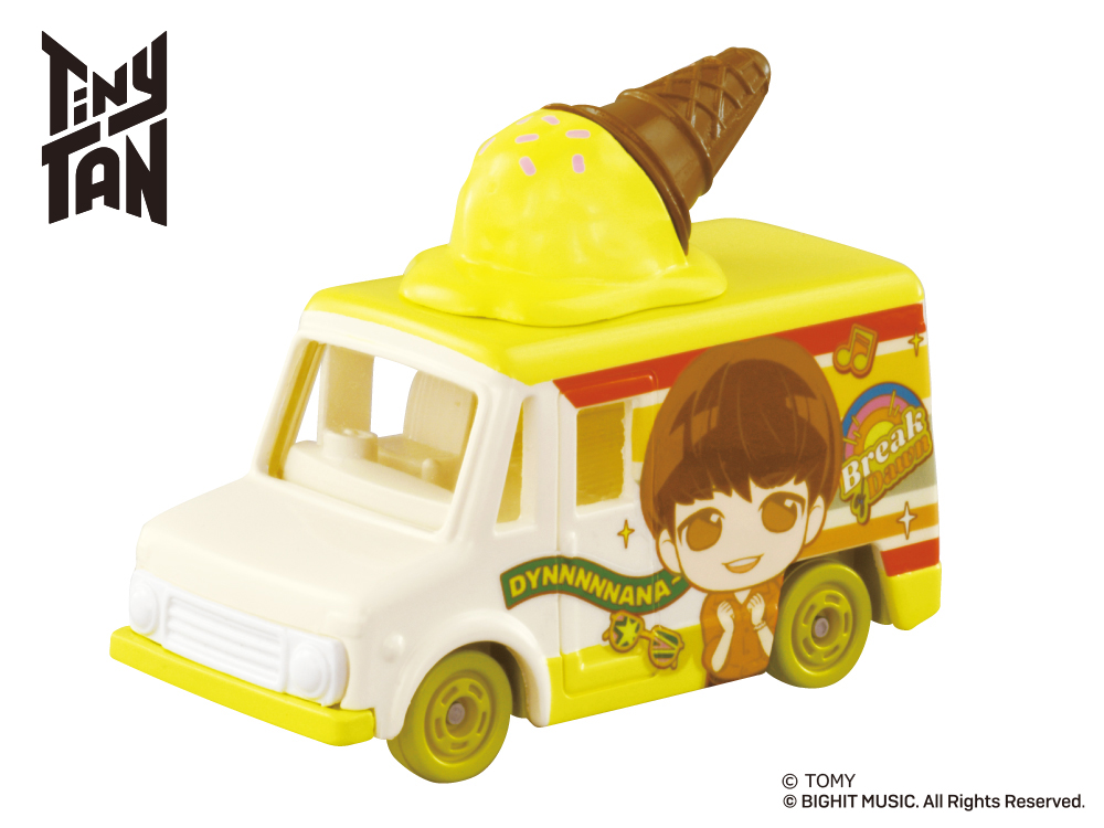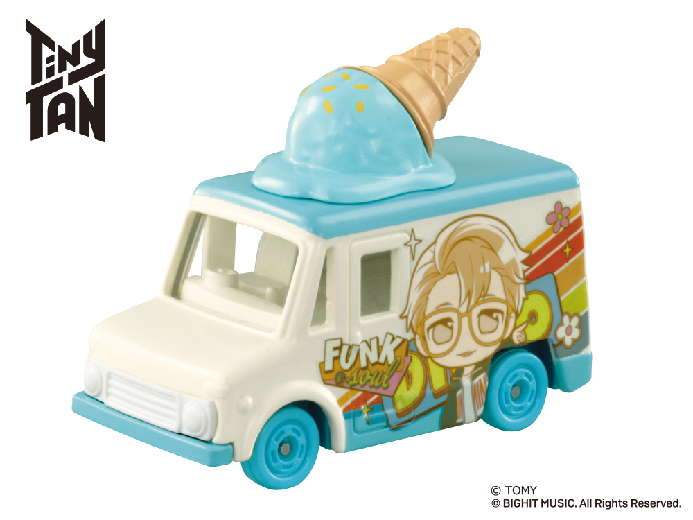 「Tiny TAN コレクション」は、人気アイドルグループ「BTS」の『Dynamite』MVに登場する車をイメージした車両に、各キャラクターのイメージカラー色のアイスが乗せられたトミカです。