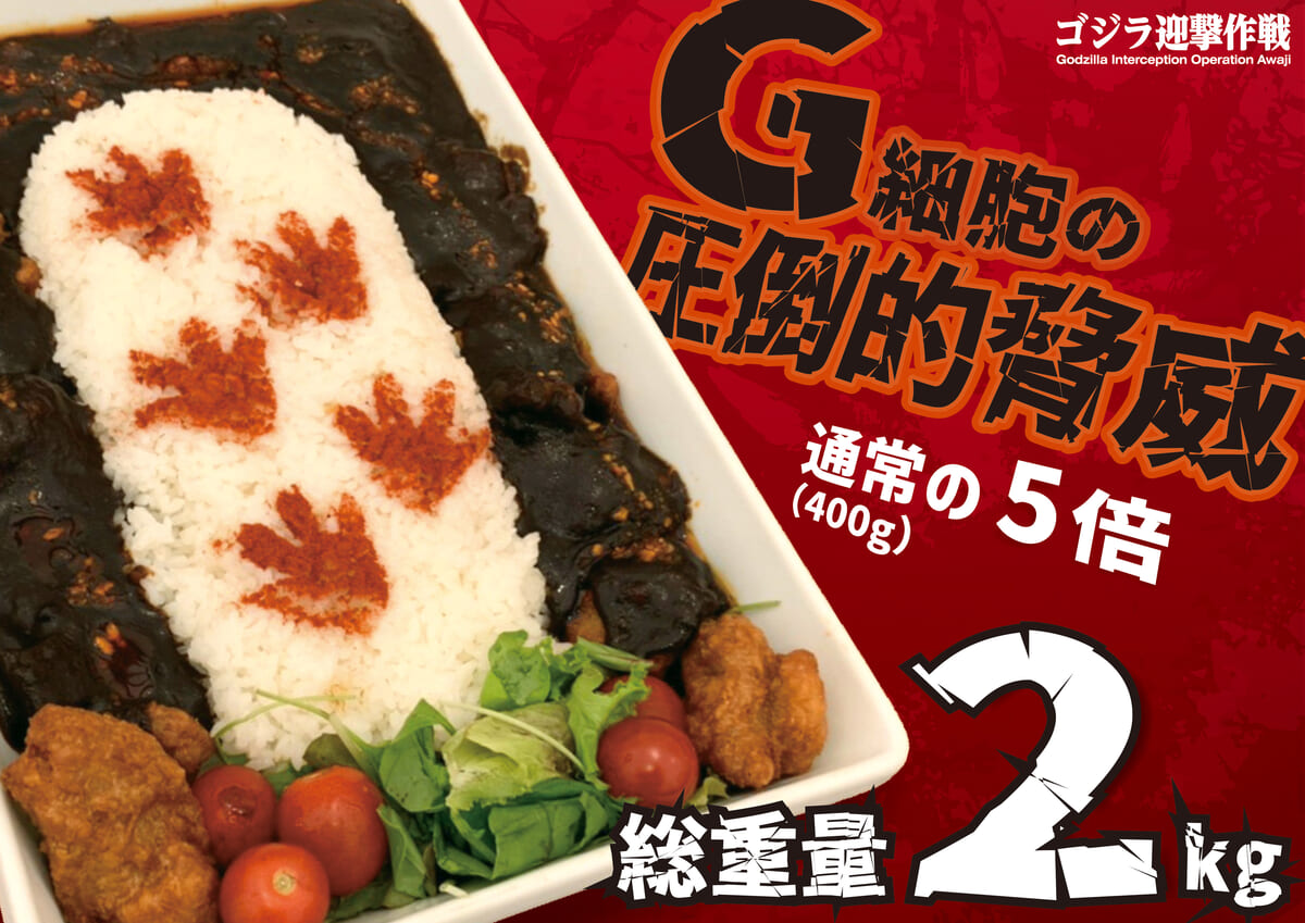 ゴジラカレーとモスラカレーのオリジナルゴジラフードを5倍盛りにした、総重量2kgの「ゴジ盛りカレー」が登場!