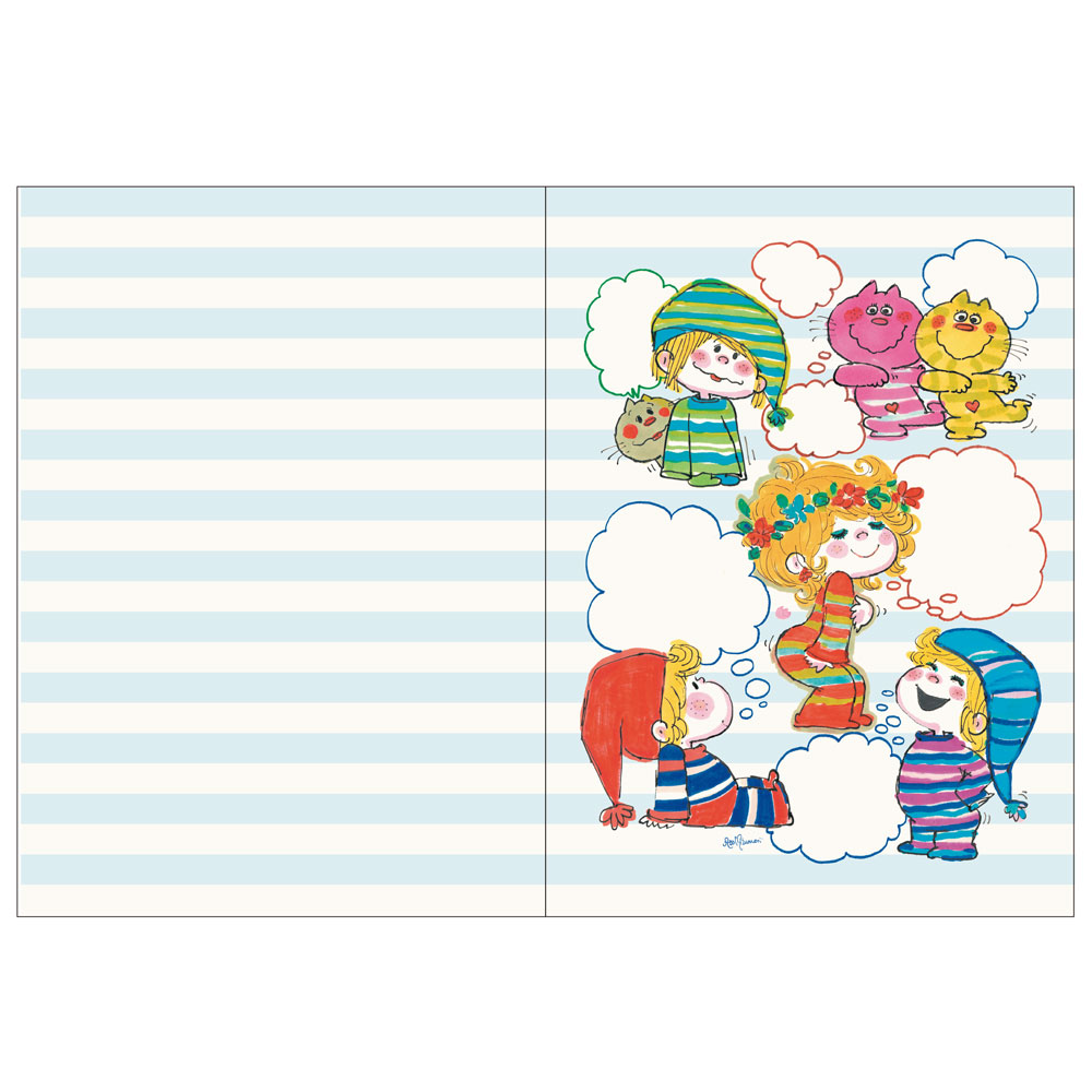 小さな男の子、女の子、猫たちの周りに吹き出しが描かれていて、デザインとメモ書きを一緒に楽しめるのも嬉しいポイントです☆