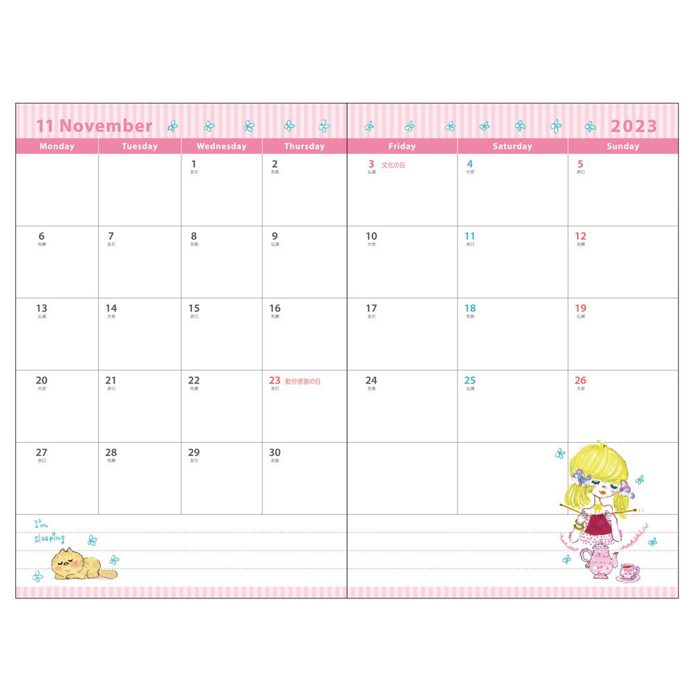 花柄の大きな黄色い帽子をかぶった女の子が目を引くマンスリー手帳。
