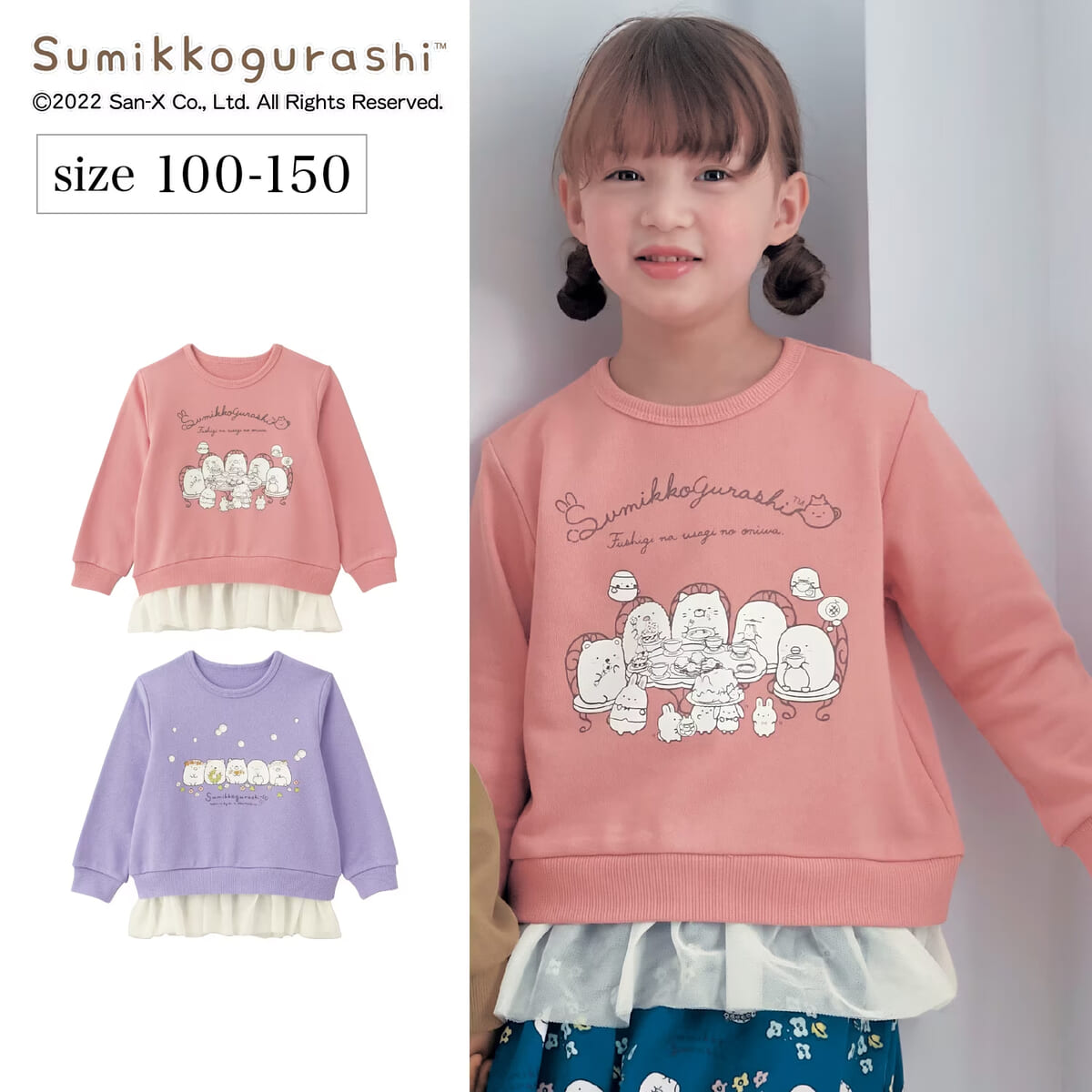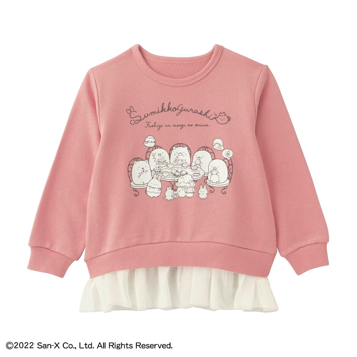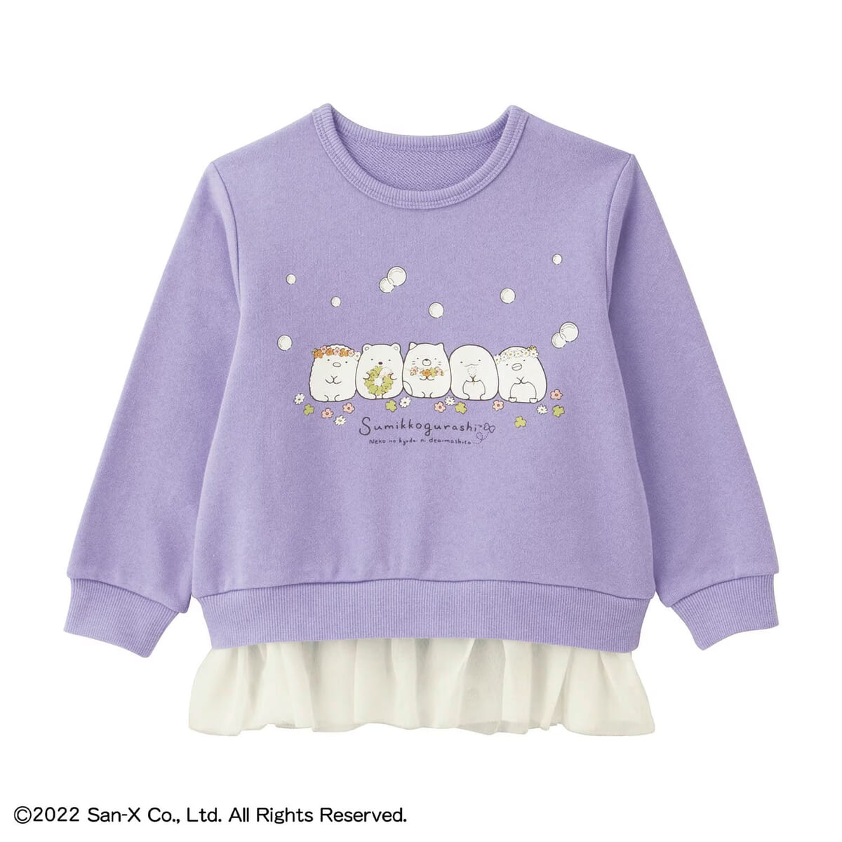 裾のチュールと「すみっコ」たちのプリントがキュートな、キッズサイズのプルオーバー!