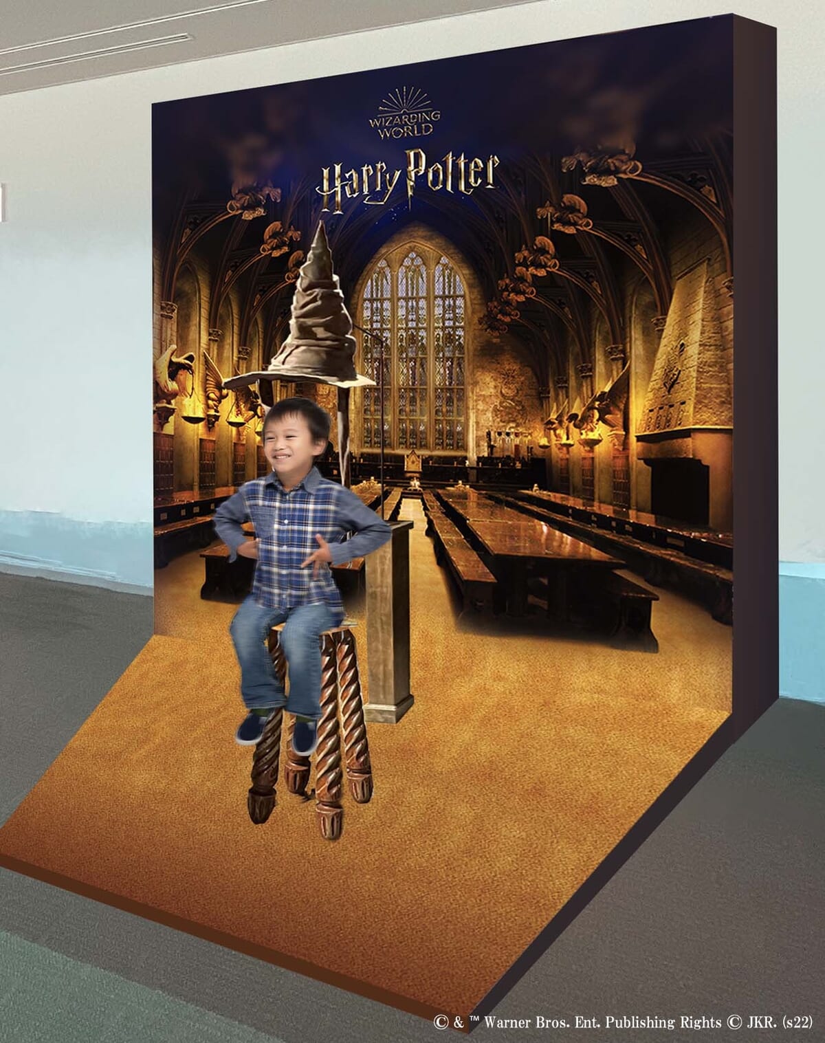 魔法ワールドの魅力が詰まった、組分けのシーンやほうきに乗り空を飛ぶシーンなどのフォトスポットが楽しめます。