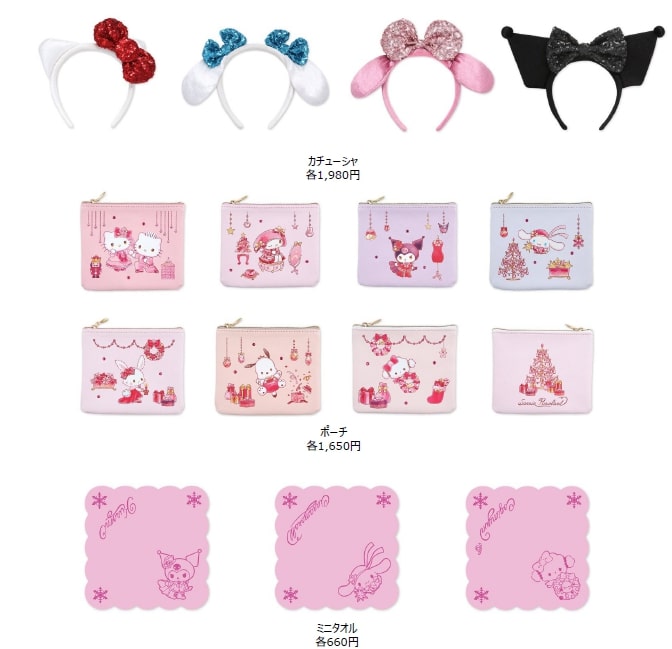 キャラクター:ハローキティ、ディアダニエル、シナモロール、マイメロディ、クロミ、ポムポムプリン、ポチャッコ、こぎみゅん
