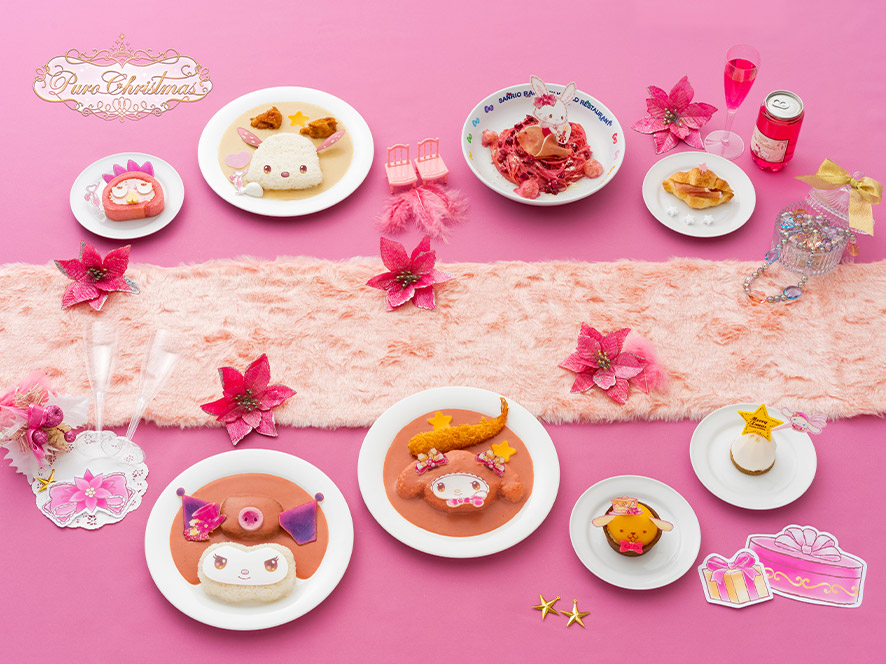 ほかにも「ウィッシュミーメル」のドレスを生ハムやパスタで表現した「生ハムと玉ねぎのドレッシー♡ピンククリームパスタ」、ちょっとリッチな気分で味わえる「一番星ホワイトツリーの珈琲と栗のモンブラン」など、おめかししてクリスマスを楽しむキャラクターたちのメニューが登場します。