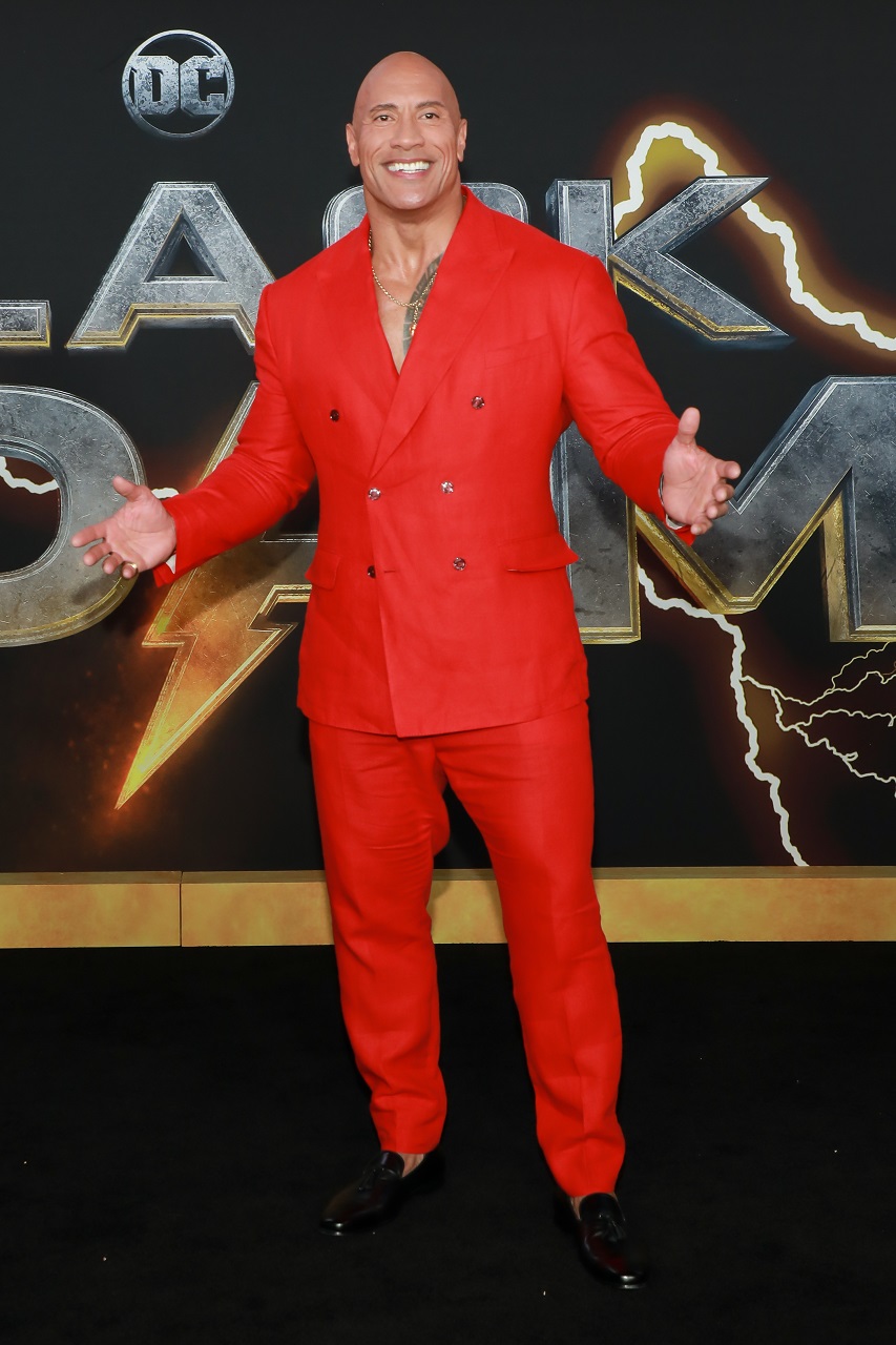 いよいよ公開を目前に控え会場が盛り上がる中、溢れんばかりの筋肉にレッドのスーツをスタイリッシュに着こなしたブラックアダム役のドウェイン・ジョンソンさんがブラックカーペットに”降臨”。