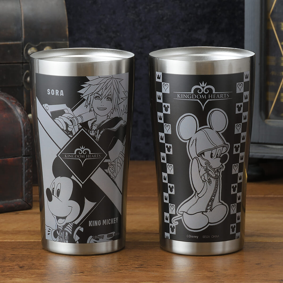 かっこいい「ソラ」と「王様ミッキー」デザインのタンブラー。