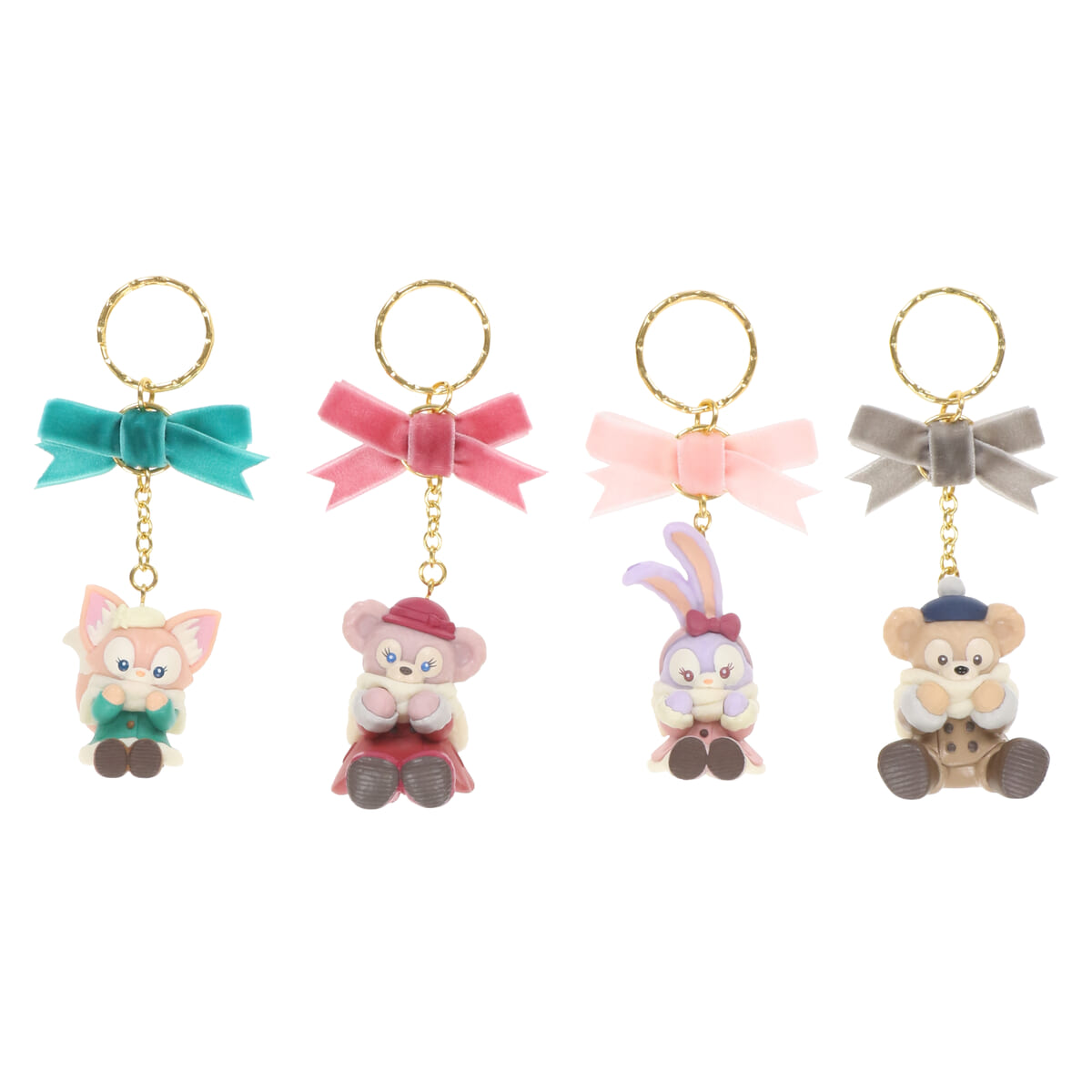 「ダッフィー」「シェリーメイ」「ステラ・ルー」「リーナ・ベル」のキーチェーンセット。