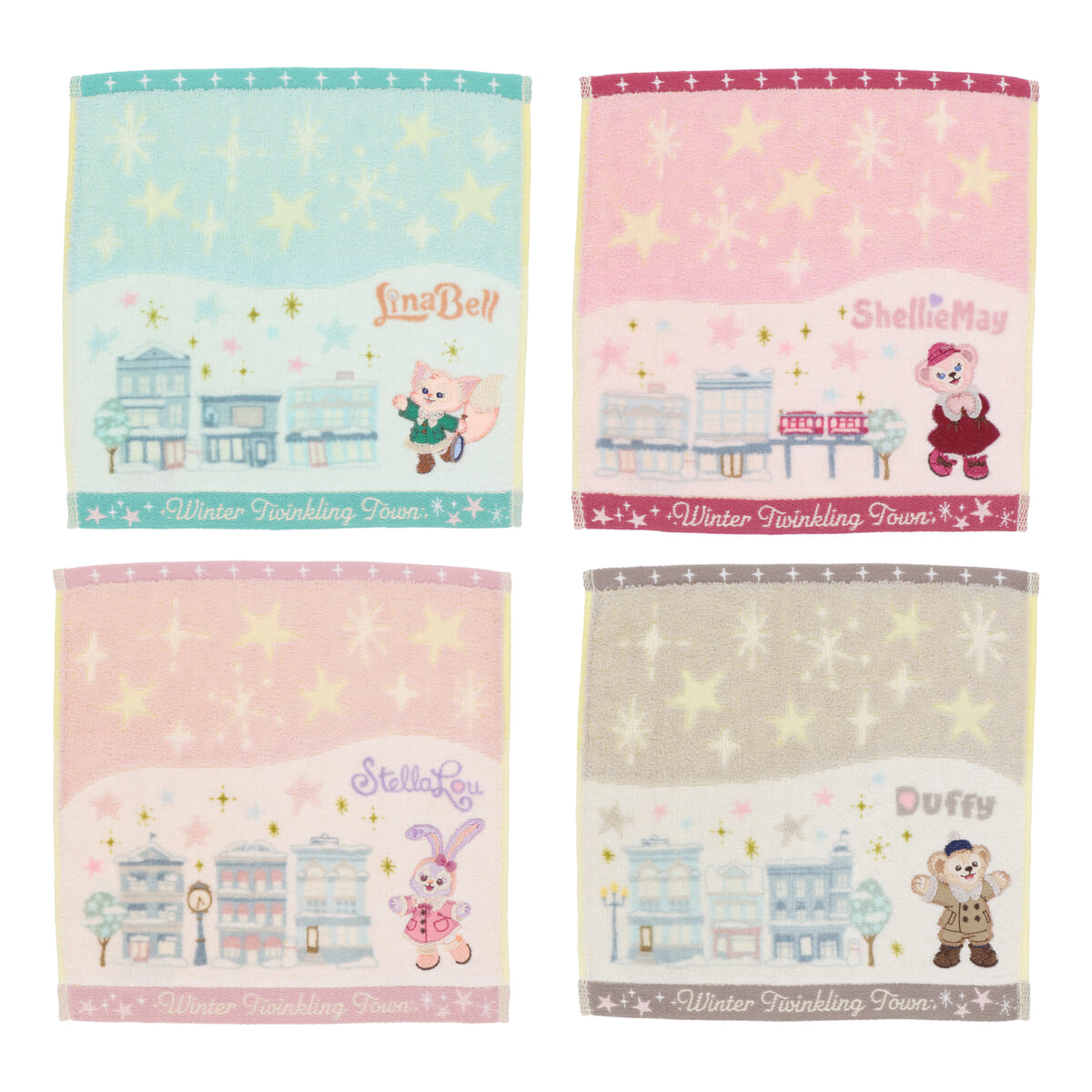「リーナ・ベル」が描かれたミニタオル4枚セット。