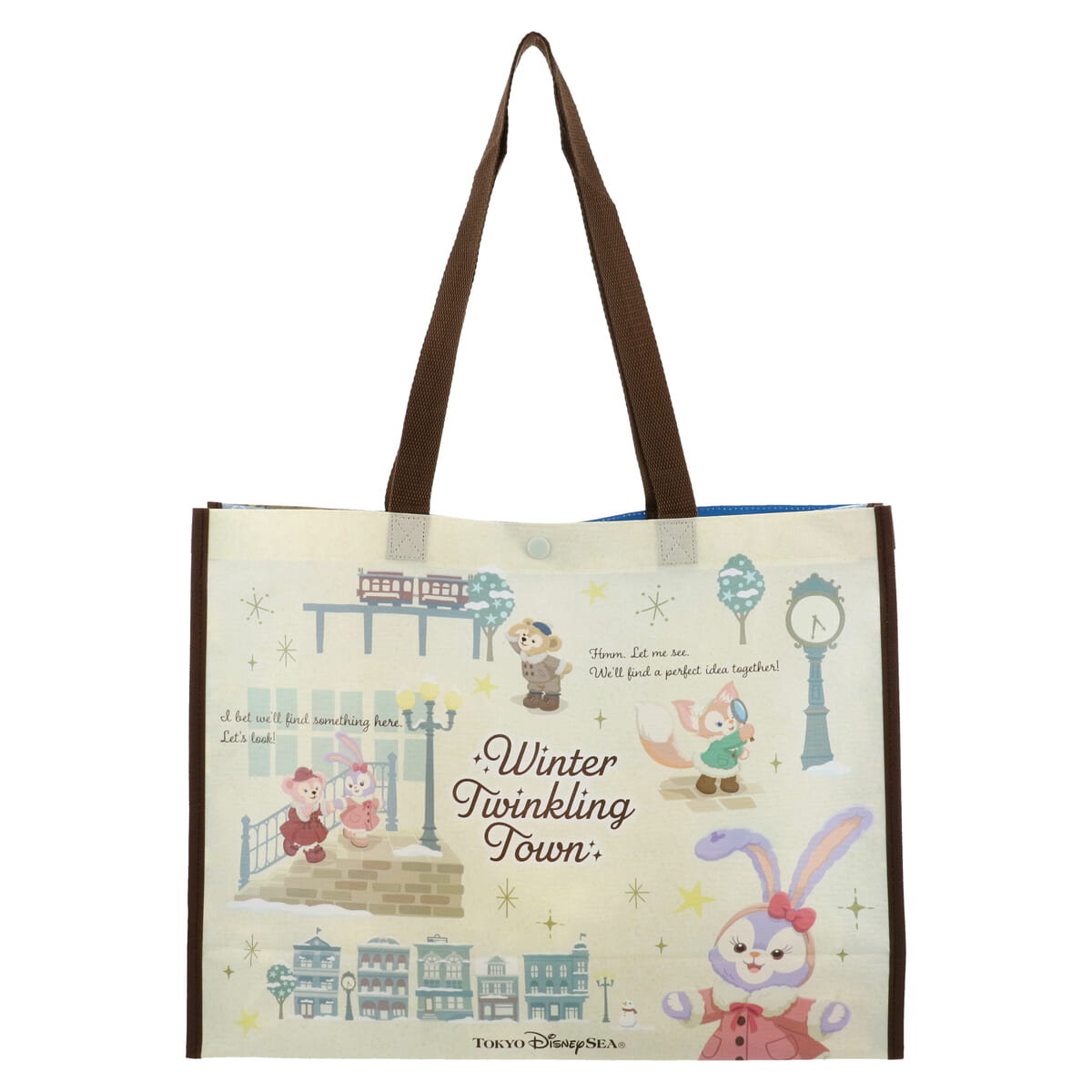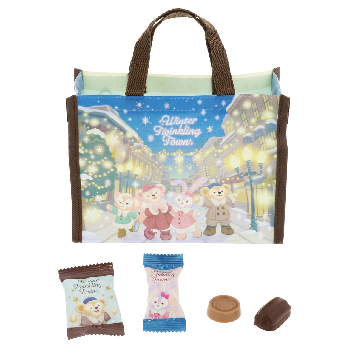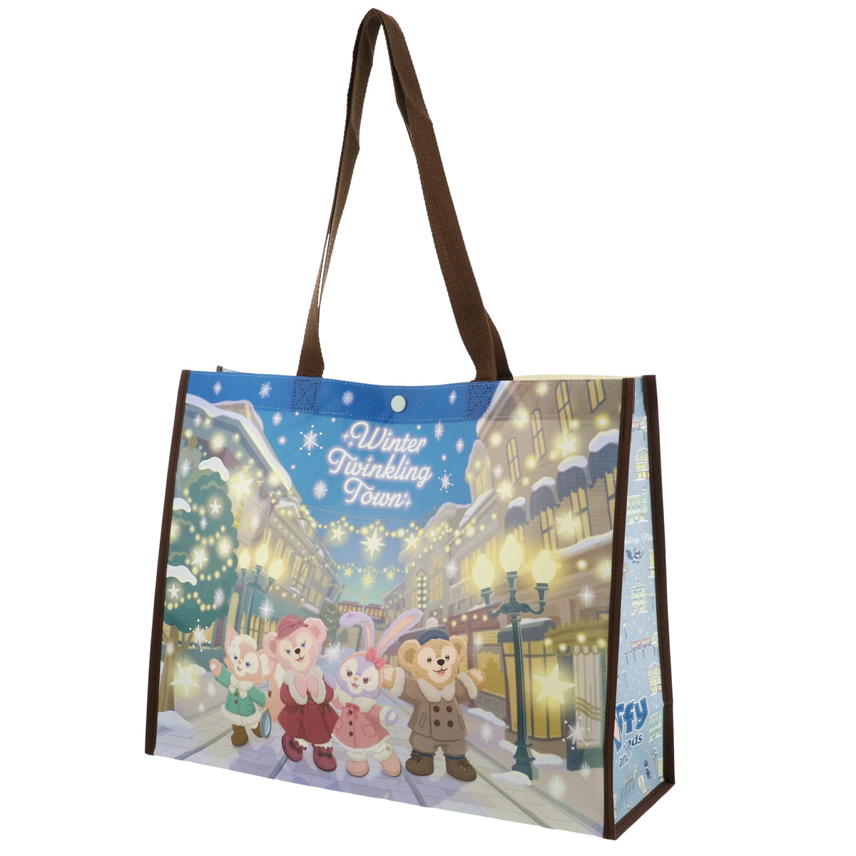 「ダッフィー&フレンズのウィンター・トゥインクリング・タウン」デザインのトートバッグ。