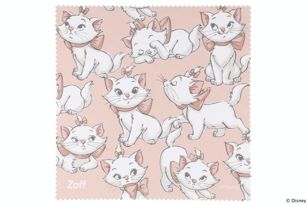 メガネ拭きには表情豊かな「マリー」を全面にプリント。