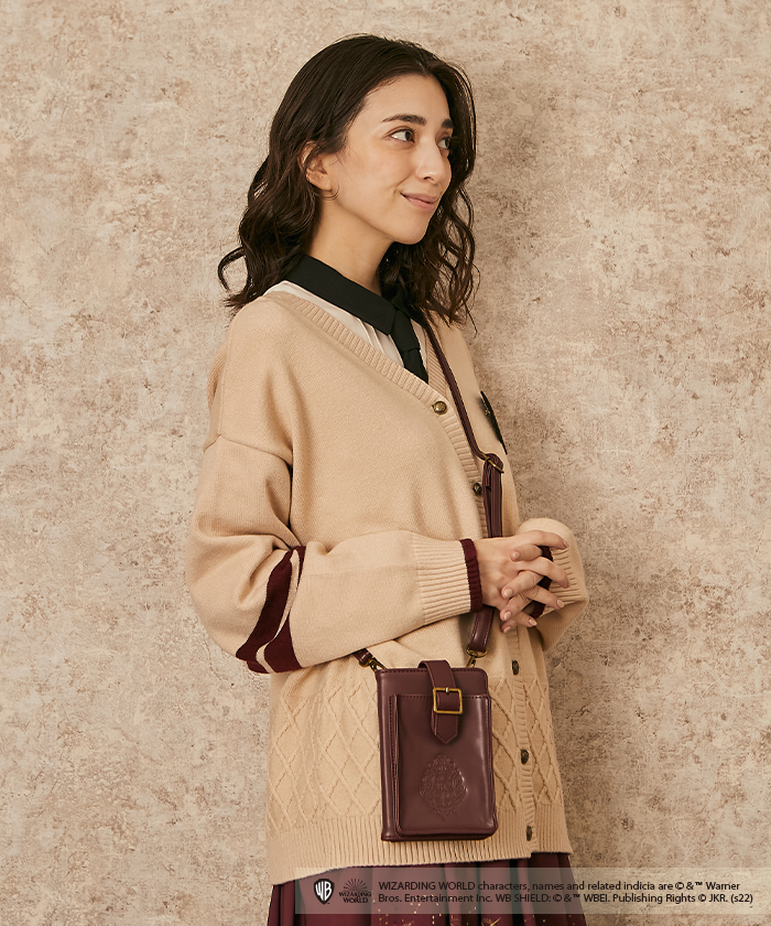 中央にホグワーツの紋章の型押しを施したポシェット。