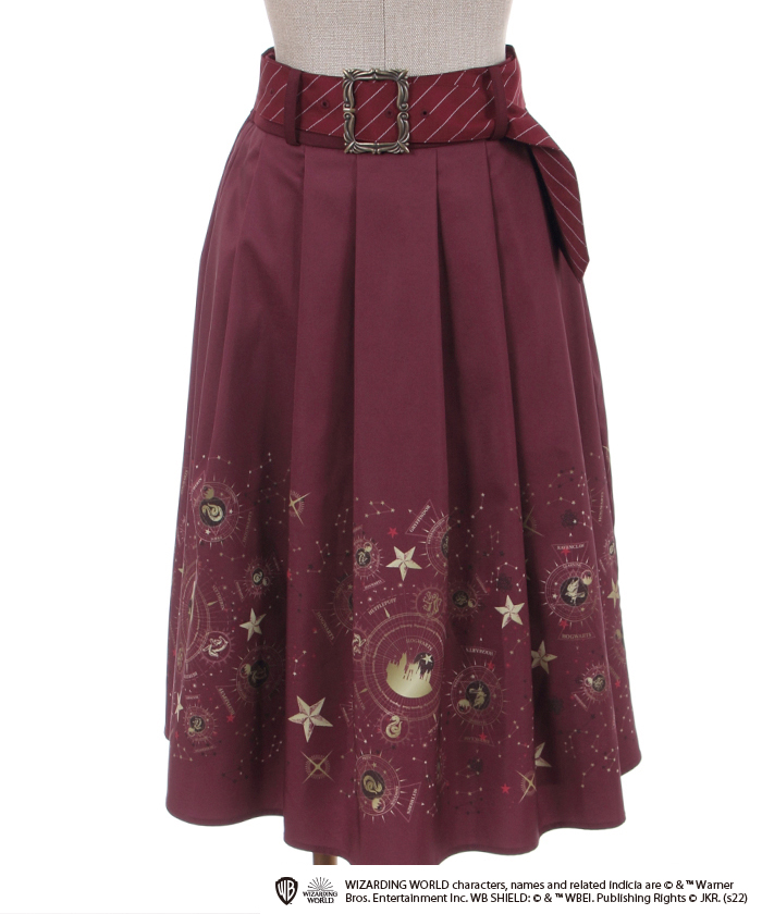 ウエストにはかっちりとしたバックルデザインと各寮をイメージしたストライプ柄ベルトを合わせクラシカルな印象に。