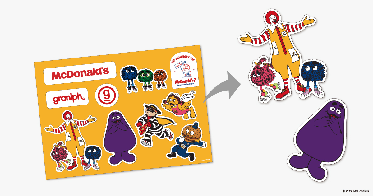 グラニフ国内店舗および公式オンラインストアにて、「マクドナルド」コラボレーションアイテムを税込5,500円以上購入の方を対象に、先着で特別オリジナルデザインステッカーがプレゼントされます。