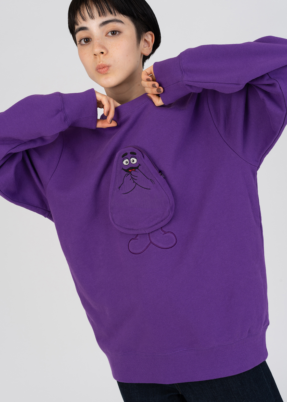 マックシェイクが大好きなキャラクター「グリマス」が立体的なポケットになったスウェット。